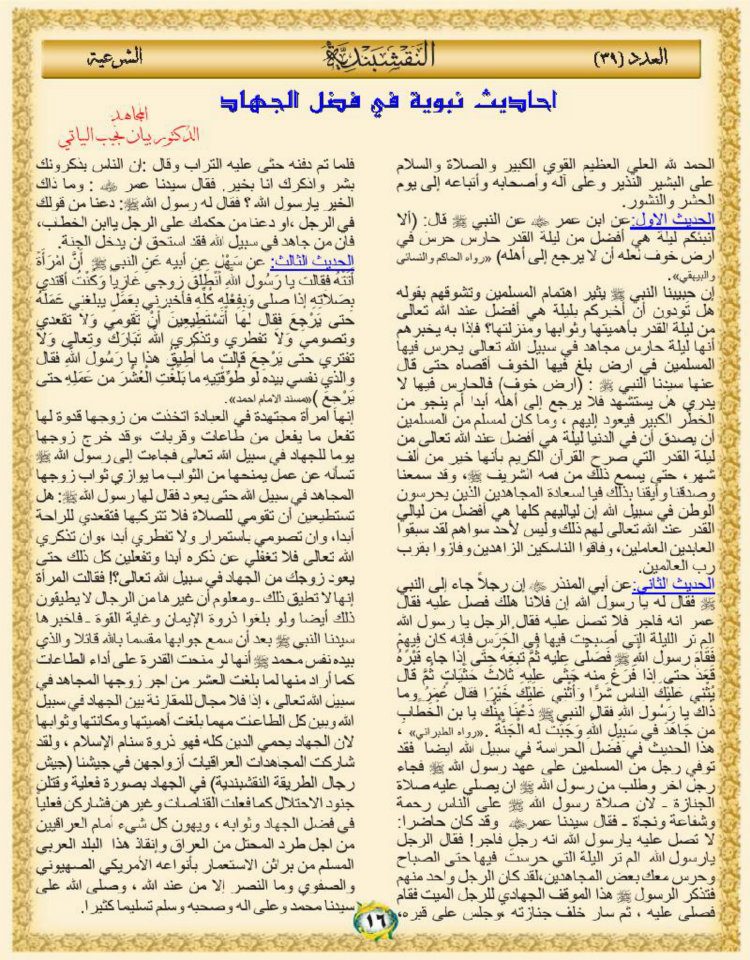 العدد التاسع والثلاثون احاديث نبوية في فضل الجهاد 1 مارس، 201225 يونيو، 2019 احاديث نبوية في فضل الجهاد
