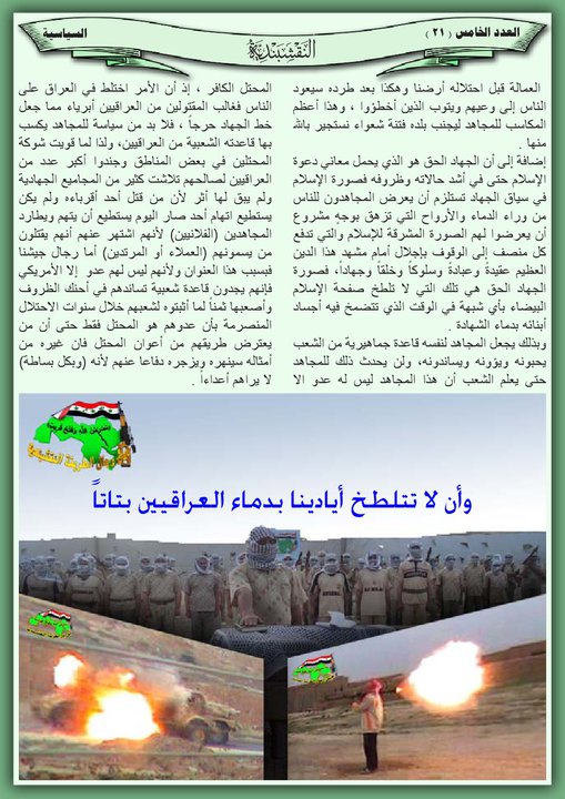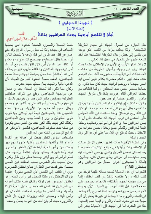 العدد الخامس ( نهجنا الجهادي ) ( الحلقة الاولى ) ( وأن لا تتلطخ أيادينا بدماء العراقيين بتاتا ) 4 مارس، 201225 يونيو، 2019 ( نهجنا الجهادي ) ( الحلقة الاولى ) ( وأن لا تتلطخ أيادينا بدماء العراقيين بتاتا )
