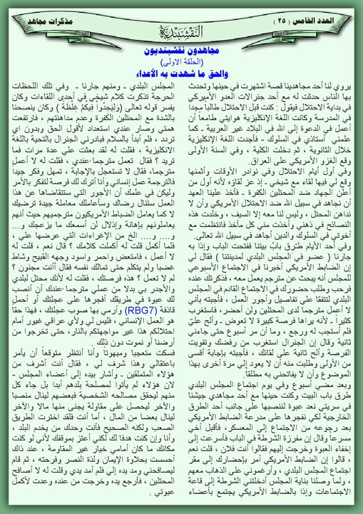 العدد الخامس مذكرات مجاهد : مجاهدون نقشبنديون ( الحلقة الاولى ) , والحق ماشهدت به الأعداء 4 مارس، 201225 يونيو، 2019 مذكرات مجاهد : مجاهدون نقشبنديون ( الحلقة الاولى ) والحق ماشهدت به الأعداء