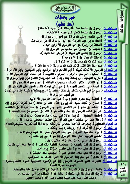 العدد الخامس عشر إستراحة مجاهد : عبر وعظات هل تعلم 15 مارس، 201225 يونيو، 2019 إستراحة مجاهد : عبر وعظات هل تعلم