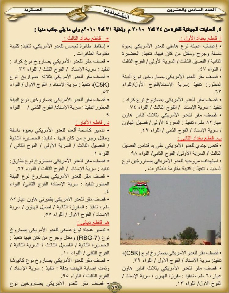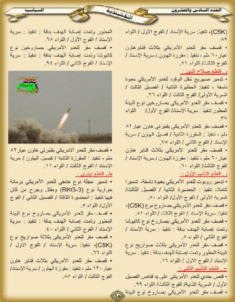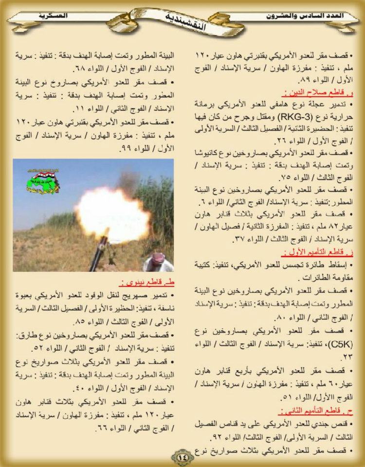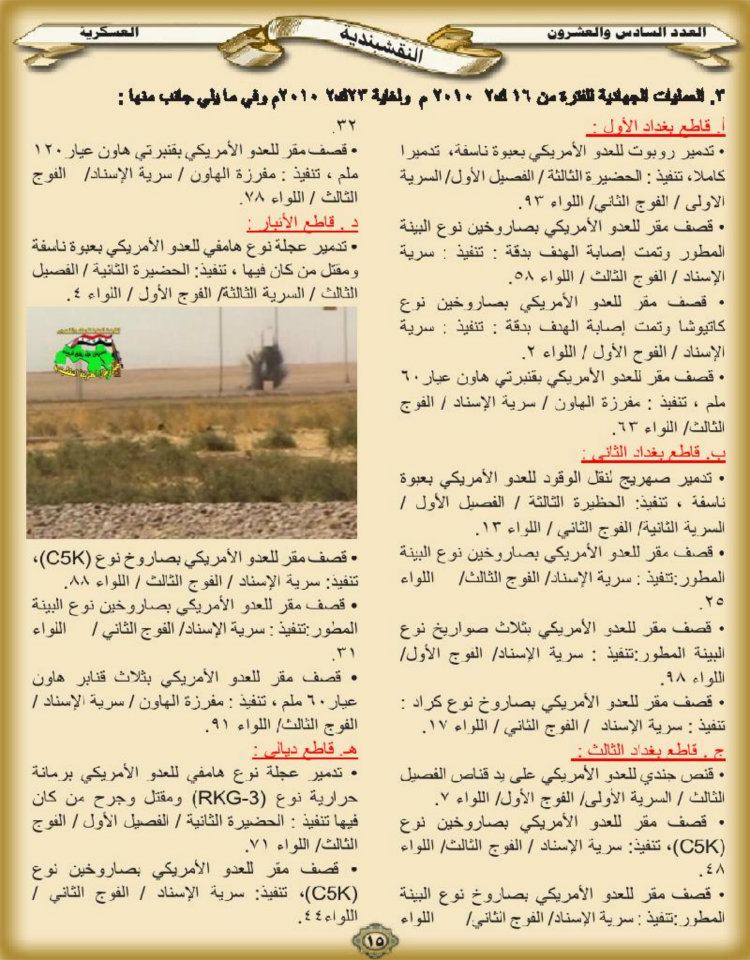 العدد السادس والعشرون جانب من العمليات الجهادية لجيش رجال الطريقة النقشبندية للفترة من 1 كانون الثاني 2010 م ولغاية 31 كانون الثاني 2010 م 20 مارس، 201225 يونيو، 2019 جانب من العمليات الجهادية لجيش رجال الطريقة النقشبندية للفترة من 1 كانون الثاني 2010 م ولغاية 31 كانون الثاني 2010 م