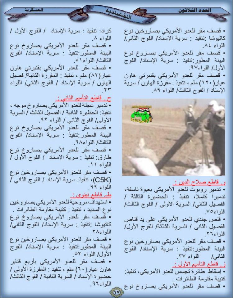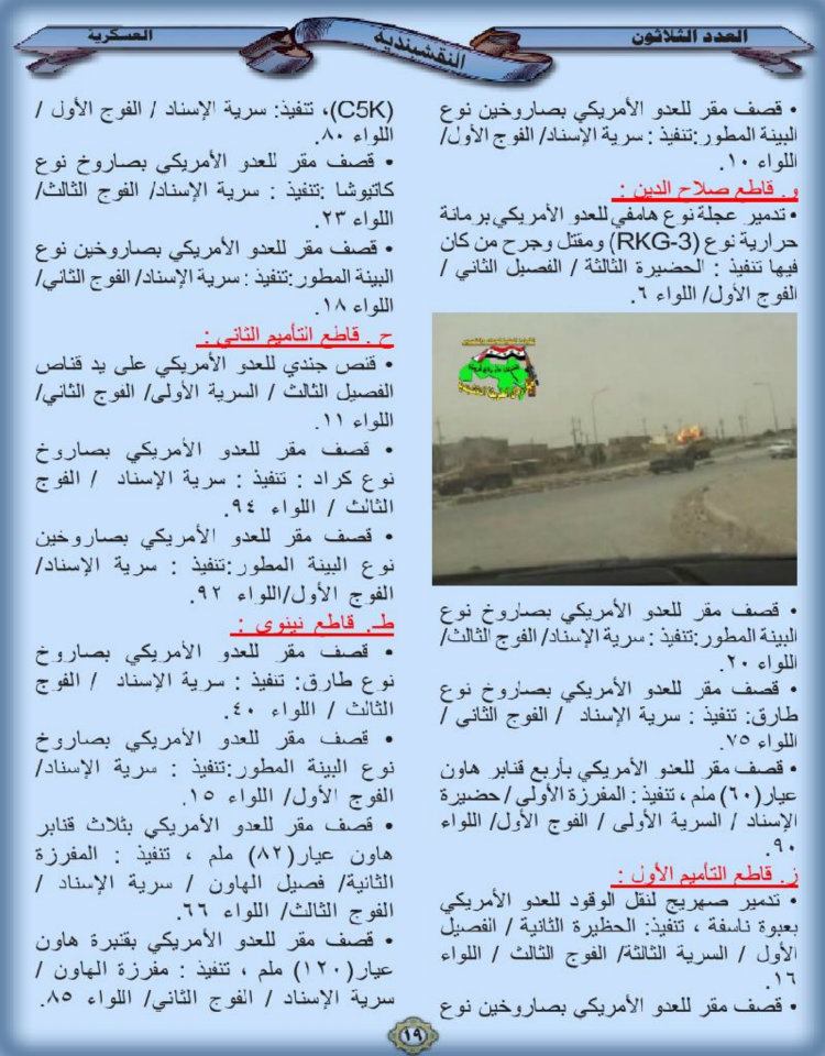 جانب من العمليات الجهادية لجيش رجال الطريقة النقشبندية للفترة من 16 نيسان 2010 م ولغاية 22 نيسان 2010 م
