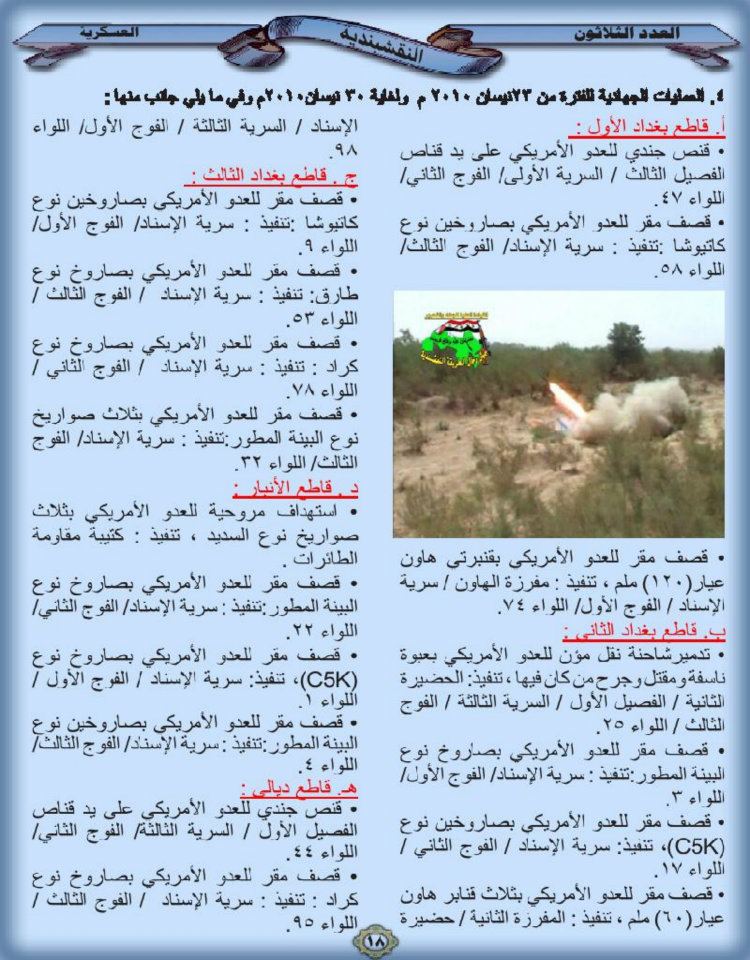جانب من العمليات الجهادية لجيش رجال الطريقة النقشبندية للفترة من 23 نيسان 2010 م ولغاية 30 نيسان 2010 م