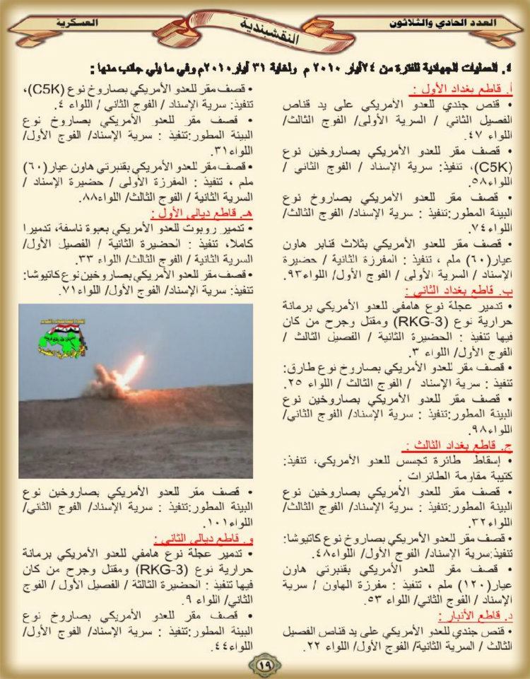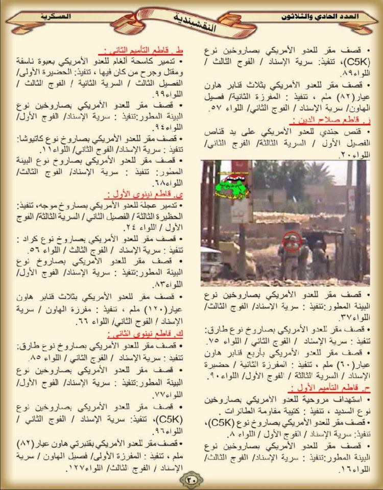 العدد الحادي والثلاثون جانب من العمليات الجهادية لجيش رجال الطريقة النقشبندية للفترة من 1 أيار 2010 م ولغاية 31 أيار 2010 م 21 مارس، 201225 يونيو، 2019 جانب من العمليات الجهادية لجيش رجال الطريقة النقشبندية للفترة من 1 أيار 2010 م ولغاية 31 أيار 2010 م
