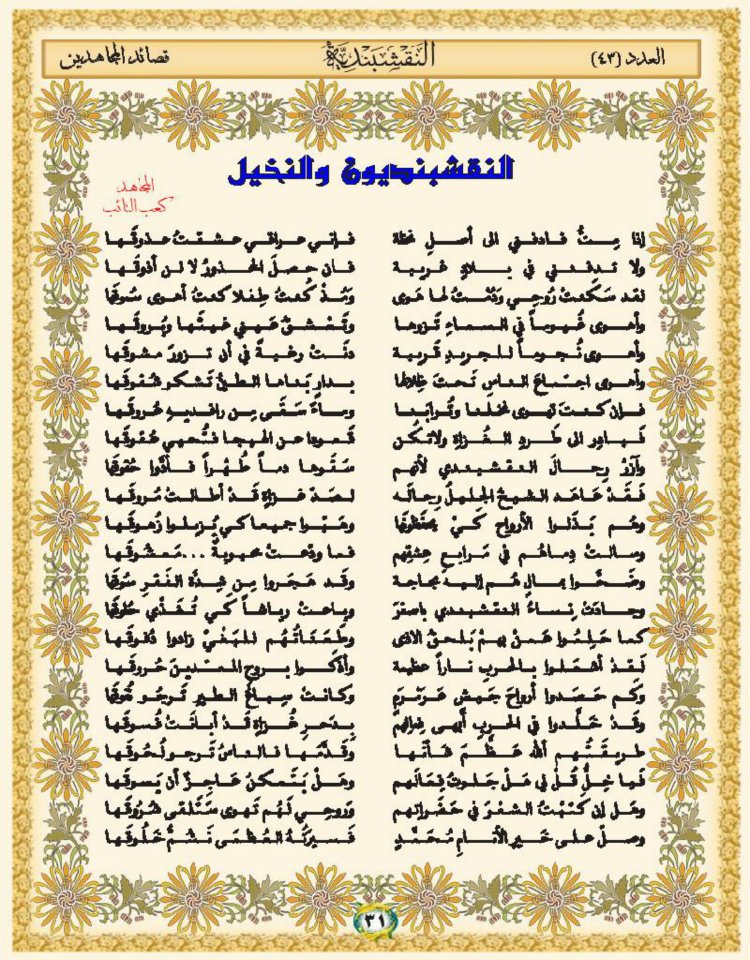 العدد الثالث والأربعون قصيدة : النقشبنديون والنخيل 21 مارس، 201225 يونيو، 2019 قصيدة النقشبنديون والنخيل