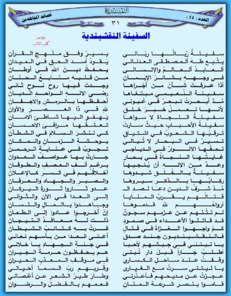 العدد الرابع والاربعون قصيدة : السفينة النقشبندية 21 مارس، 201225 يونيو، 2019 قصيدة السفينة النقشبندية