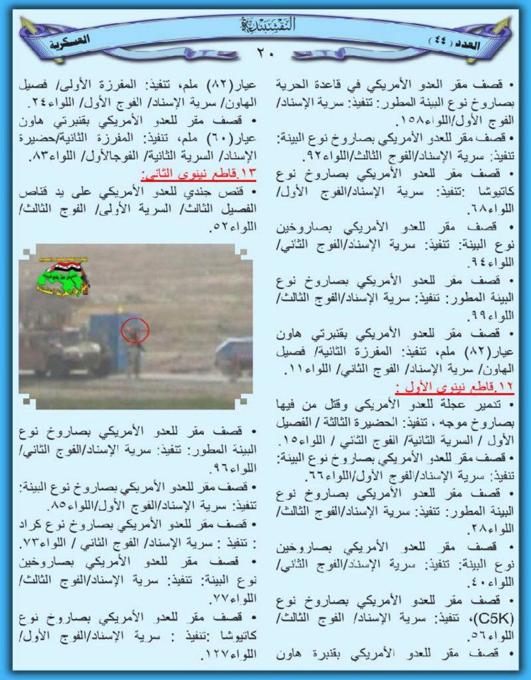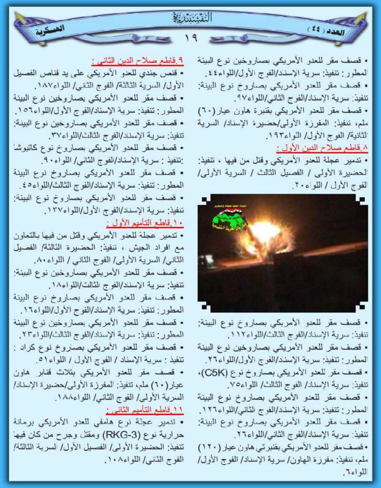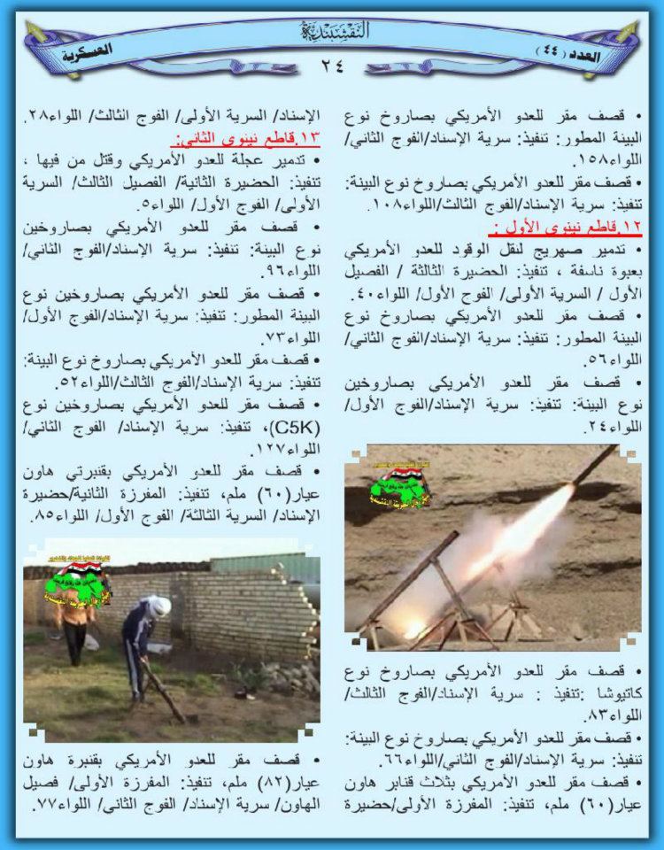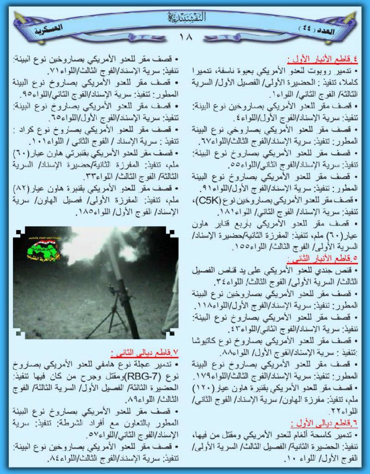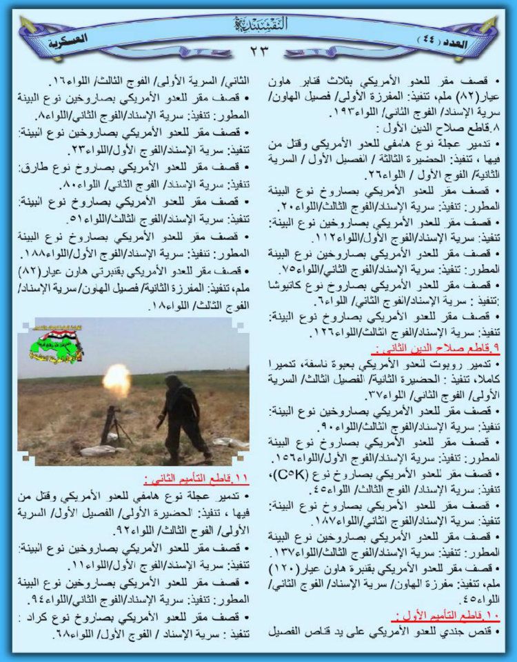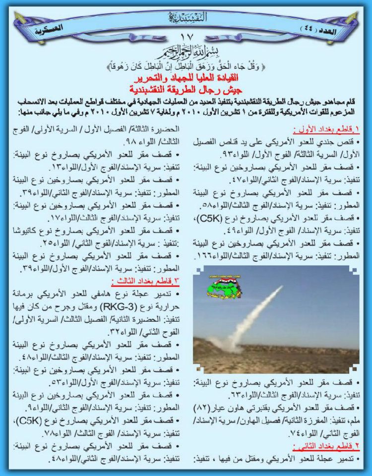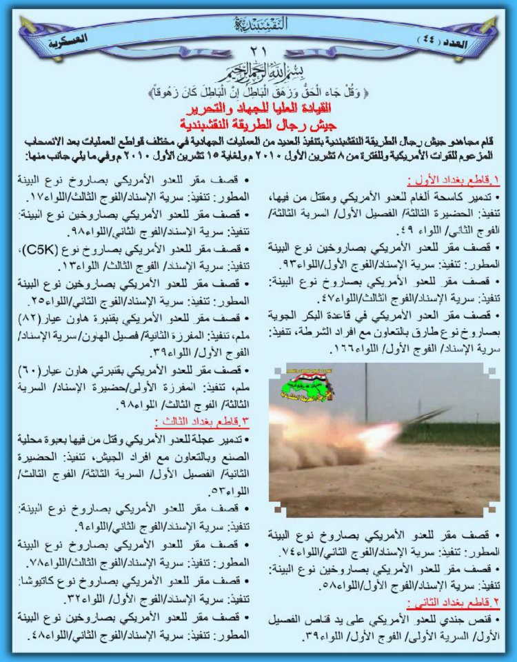 العدد الرابع والاربعون جانب من العمليات الجهادية لجيش رجال الطريقة النقشبندية للفترة من 1تشرين الاول 2010م الى 15تشرين الاول 2010م 21 مارس، 201225 يونيو، 2019 جانب من العمليات الجهادية لجيش رجال الطريقة النقشبندية للفترة من 1تشرين الاول 2010م الى 15تشرين الاول 2010م