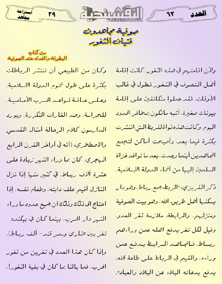 العدد الثالث والستون صوفية مجاهدون -فتيان الثغور 21 مارس، 201225 يونيو، 2019 صوفية مجاهدون فتيان الثغور