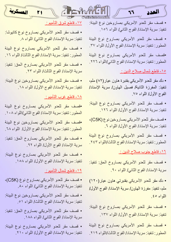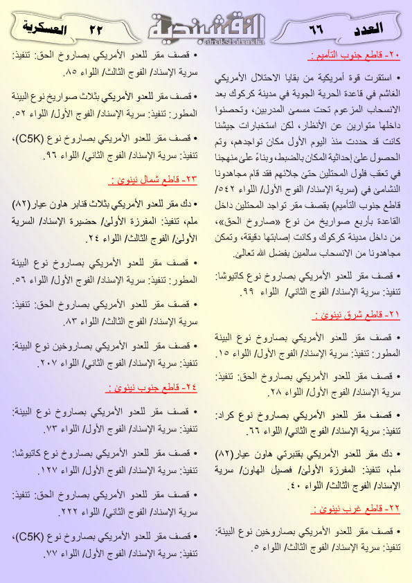 جانب من العمليات الجهادية لجيش رجال الطريقة النقشبندية للفترة من 1 كانون الأول 2011 م ولغاية 15 كانون الأول 2011 م