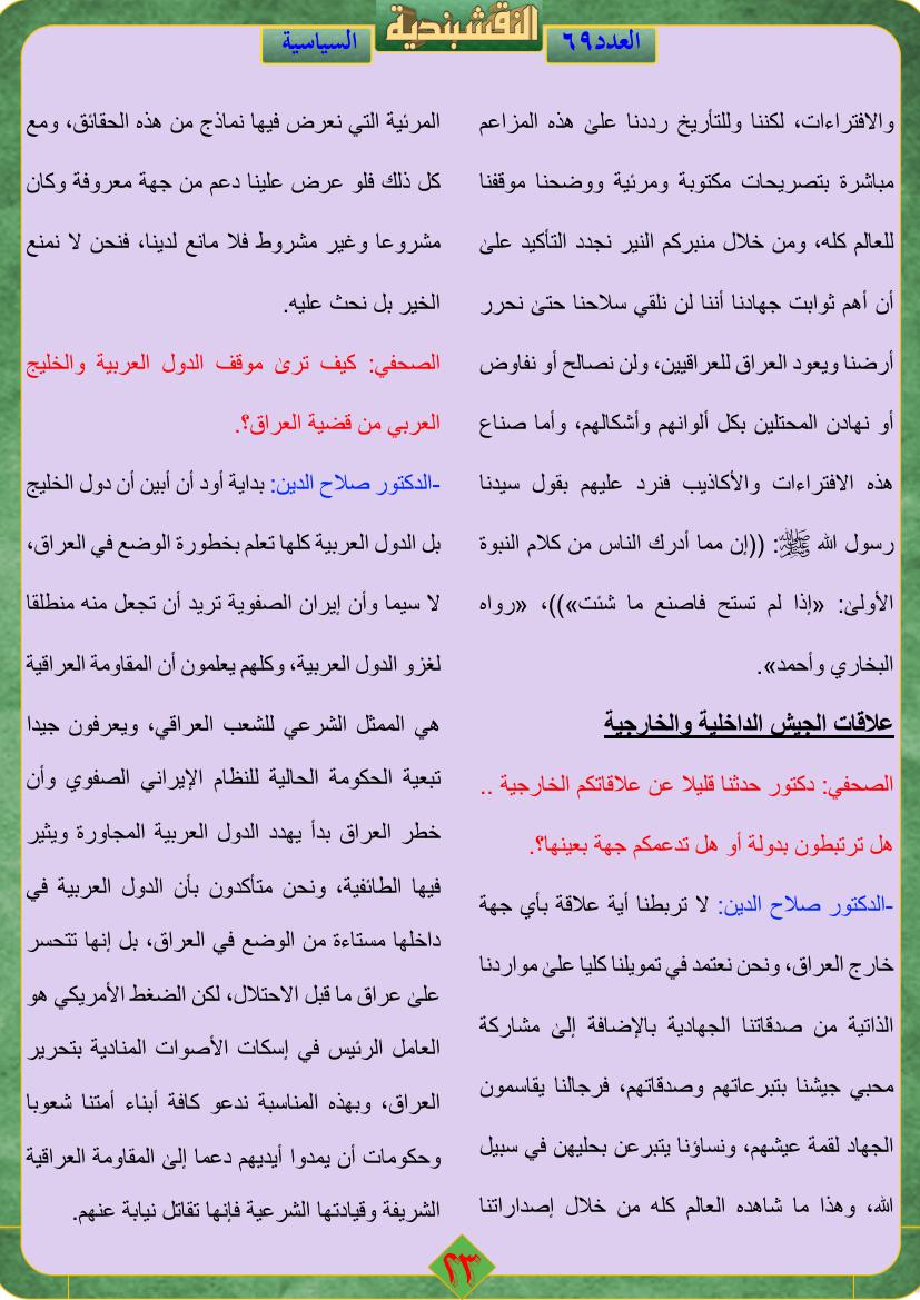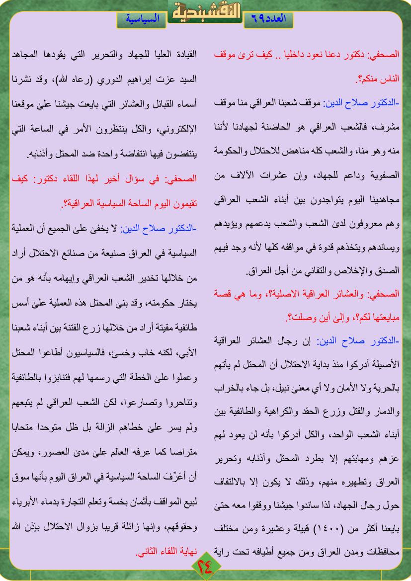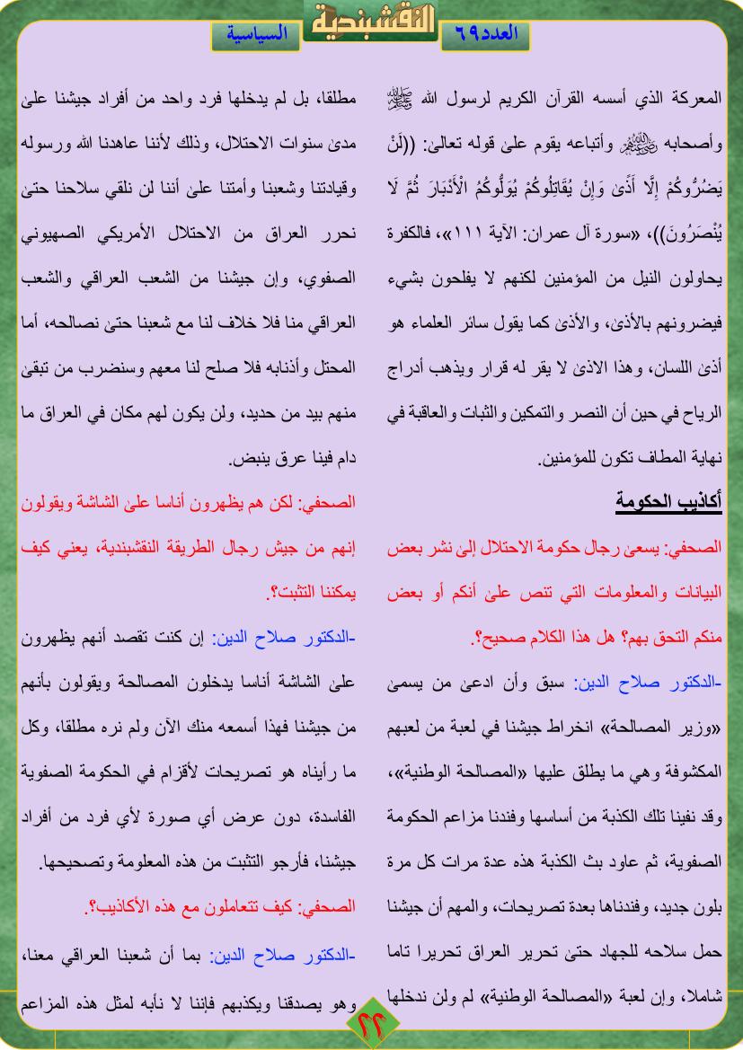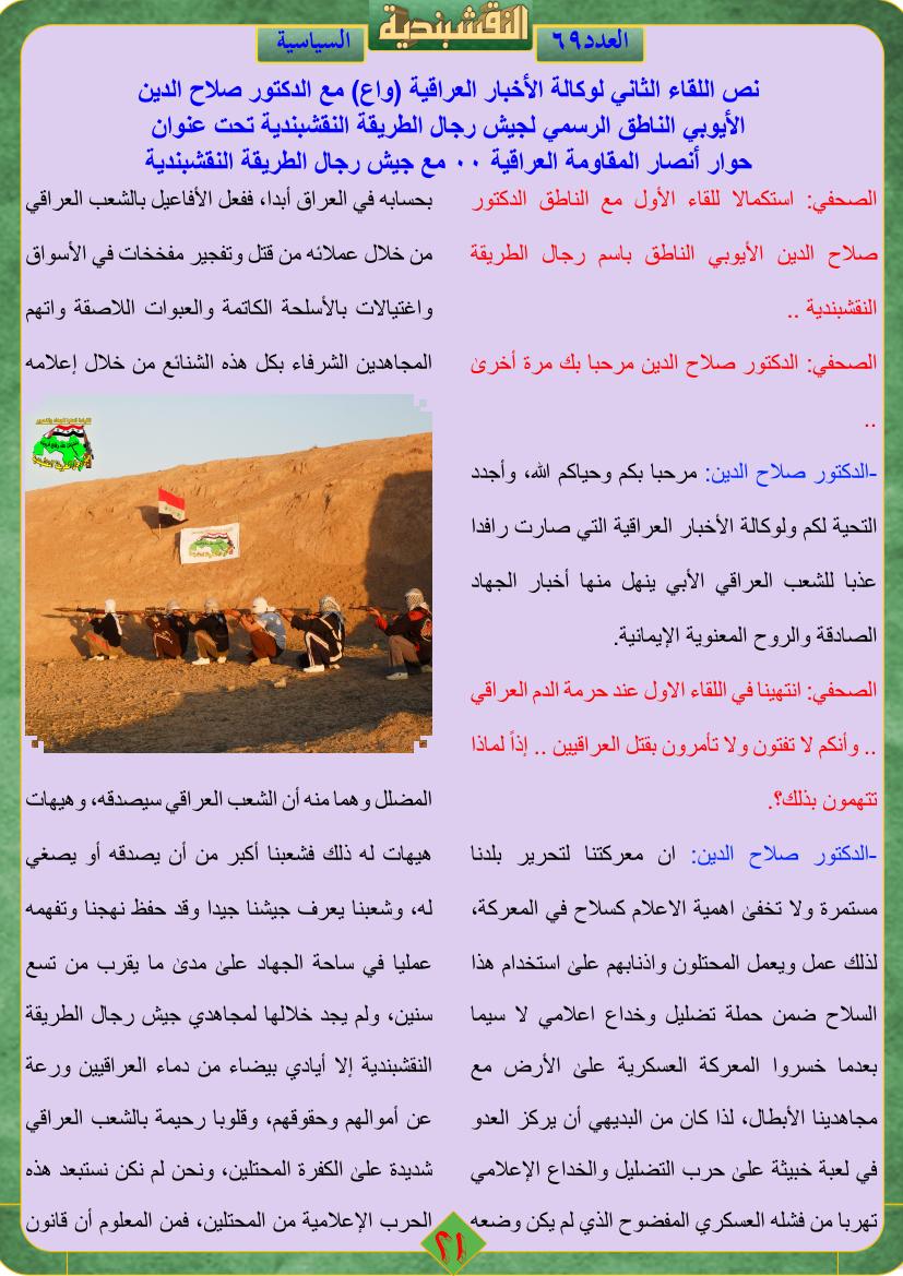نص اللقاء الثاني لوكالة الأخبار العراقية (واع) مع الدكتور صلاح الدين الأيوبي الناطق الرسمي لجيش رجال الطريقة النقشبندية