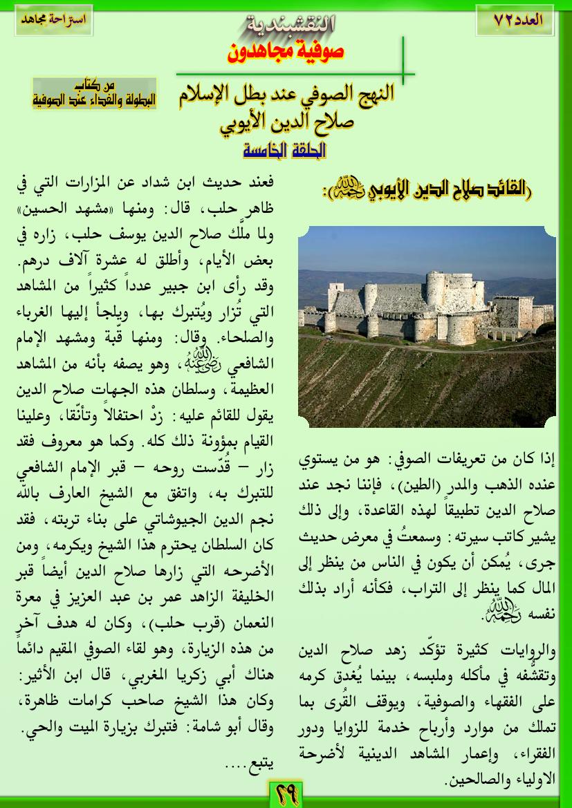 العدد الثاني والسبعون صوفية مجاهدون – النهج الصوفي عند بطل الإسلام صلاح الدين الأيوبي 13 أغسطس، 201225 يونيو، 2019 صوفية مجاهدون النهج الصوفي عند بطل الإسلام صلاح الدين الأيوبي