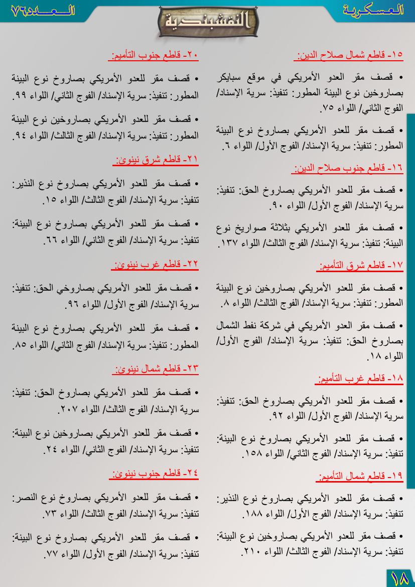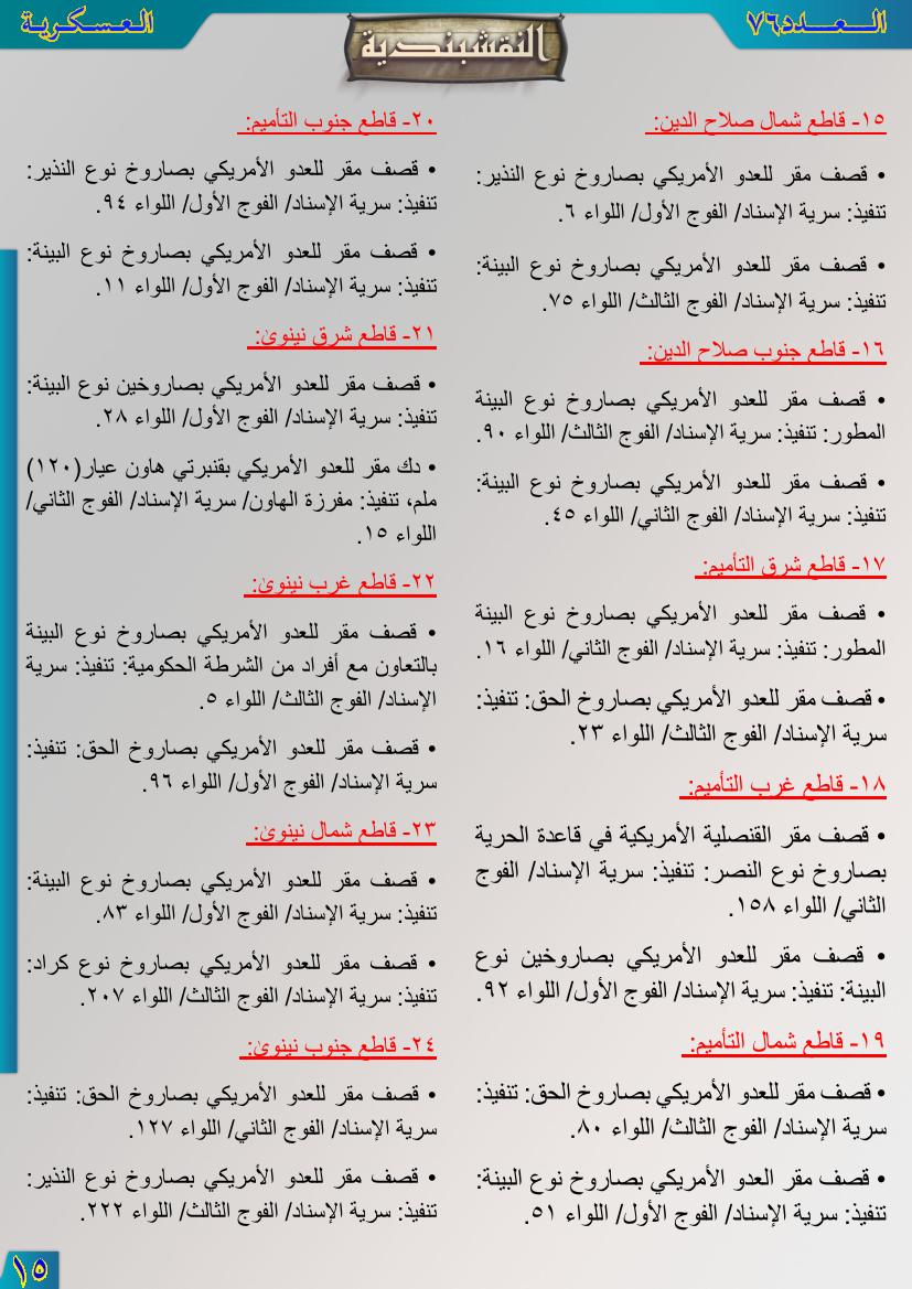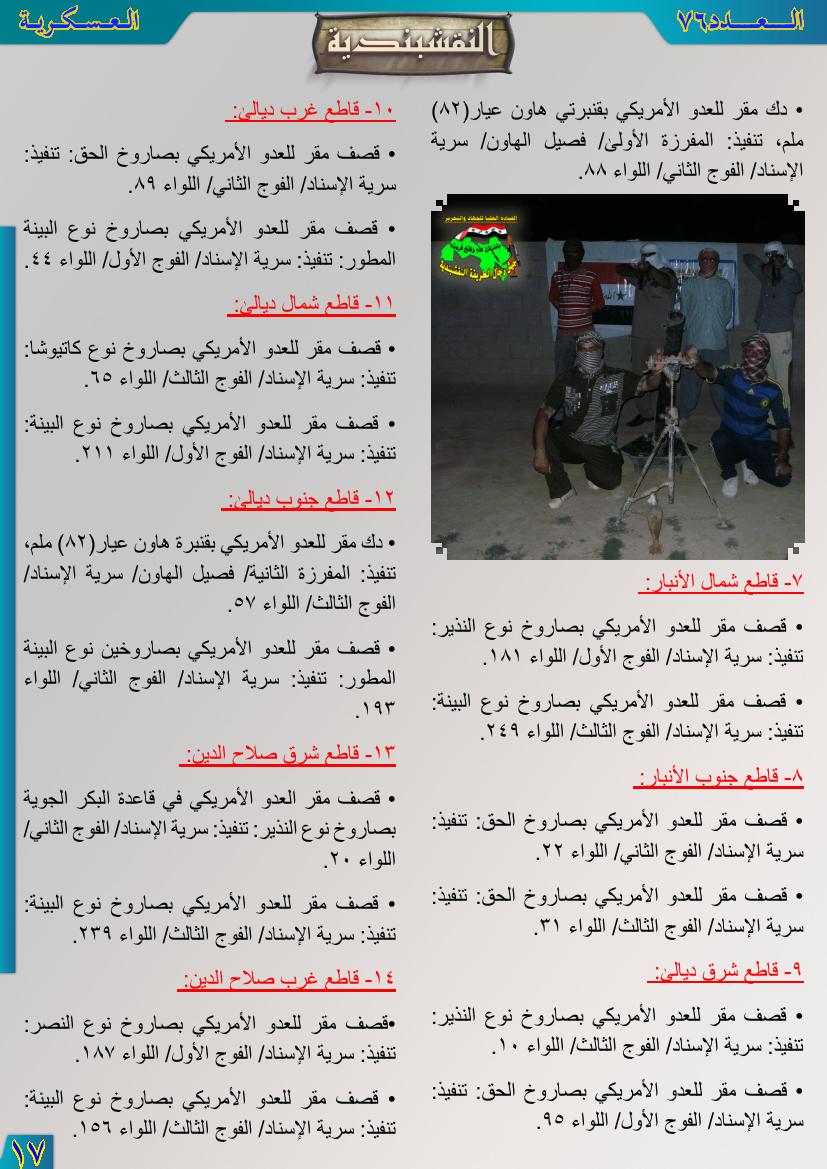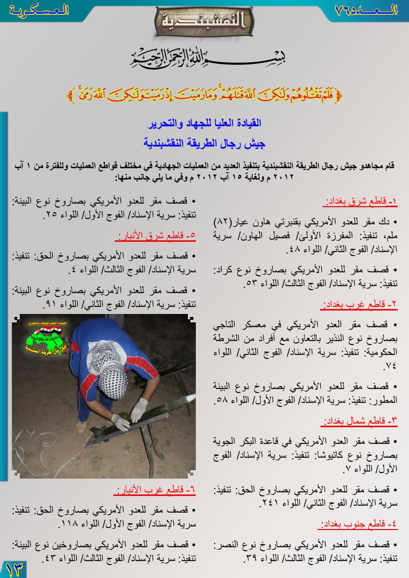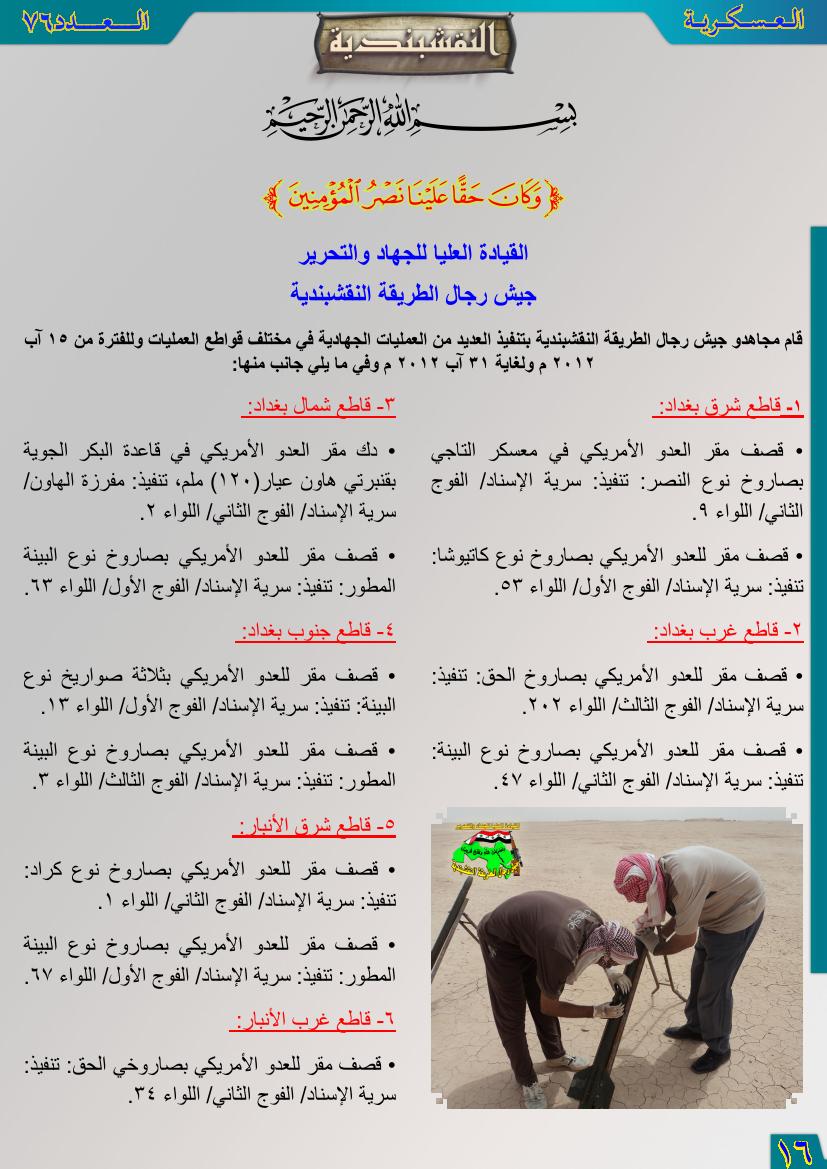 العدد السادس والسبعون جانب من العمليات الجهادية للفترة من 1آب 2012م ولغاية 31آب 2012م 12 نوفمبر، 201225 يونيو، 2019 جانب من العمليات الجهادية للفترة من 1آب 2012م ولغاية 31آب 2012م