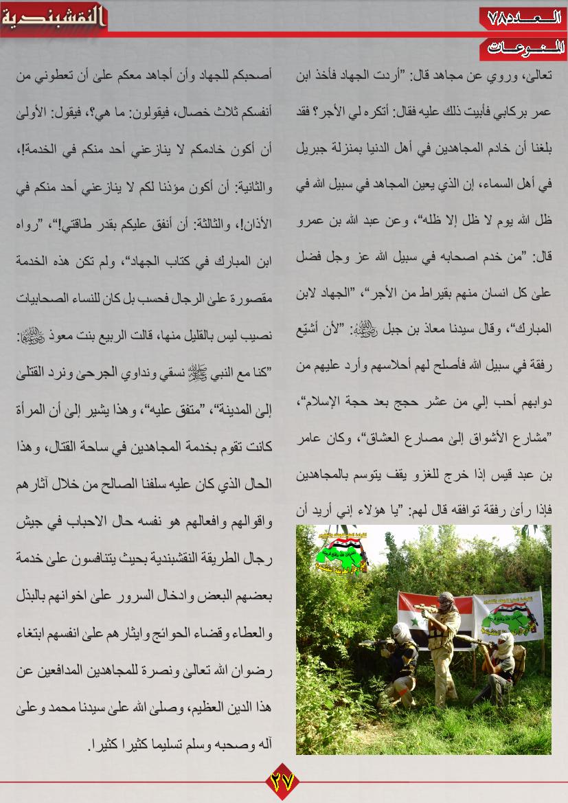 بيان قيادة جيش رجال الطريقة النقشبندية بصدد أنتفاضة الشعب العراقي