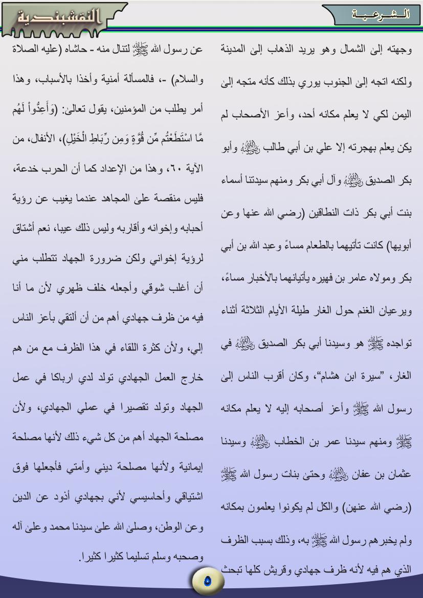 جانب من حديث مشايخ الطريقة النقشبندية جانب من حديث أحد مشايخ الطريقة النقشبندية قدس الله سره -أهمية ظرف الجهاد ووجوب مراعاته 27 أكتوبر، 201325 يونيو، 2019 جانب من حديث أحد مشايخ الطريقة النقشبندية قدس الله سره أهمية ظرف الجهاد ووجوب مراعاته