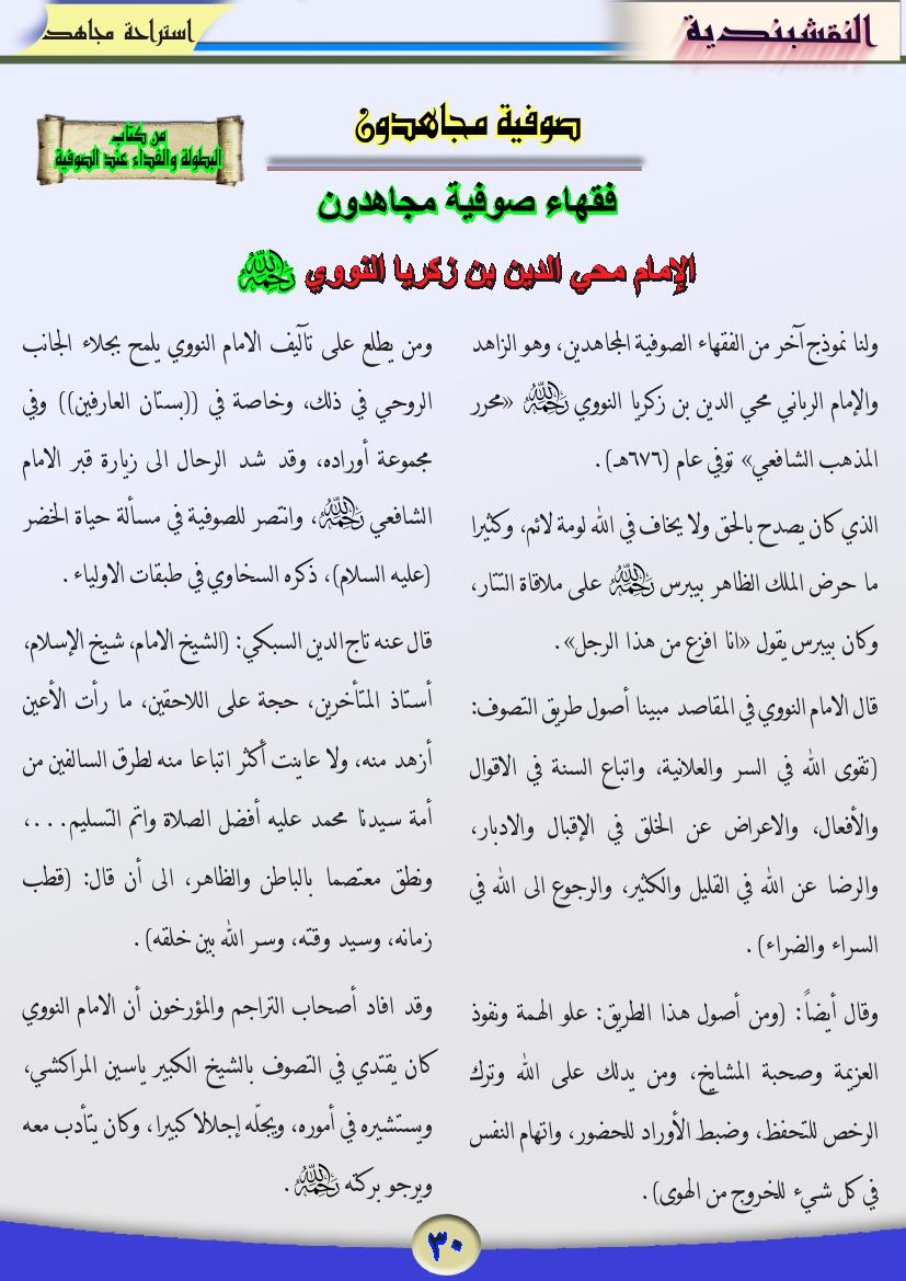 العدد الثامن والثمانون صوفية مجاهدون – فقهاء صوفية مجاهدون – الإمام محي الدين بن زكريا النووي ( رحمه الله ) 26 مايو، 201425 يونيو، 2019 صوفية مجاهدون فقهاء صوفية مجاهدون الإمام محي الدين بن زكريا النووي ( رحمه الله )