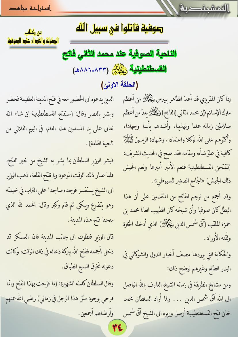 العدد التاسع والثمانون صوفية مقاومون – الناحية الصوفية عند محمد الثاني فاتح القسطنطينية رحمه الله – الحلقة الاولى 25 أكتوبر، 201425 يونيو، 2019 صوفية مقاومون – الناحية الصوفية عند محمد الثاني فاتح القسطنطينية رحمه الله الحلقة الاولى
