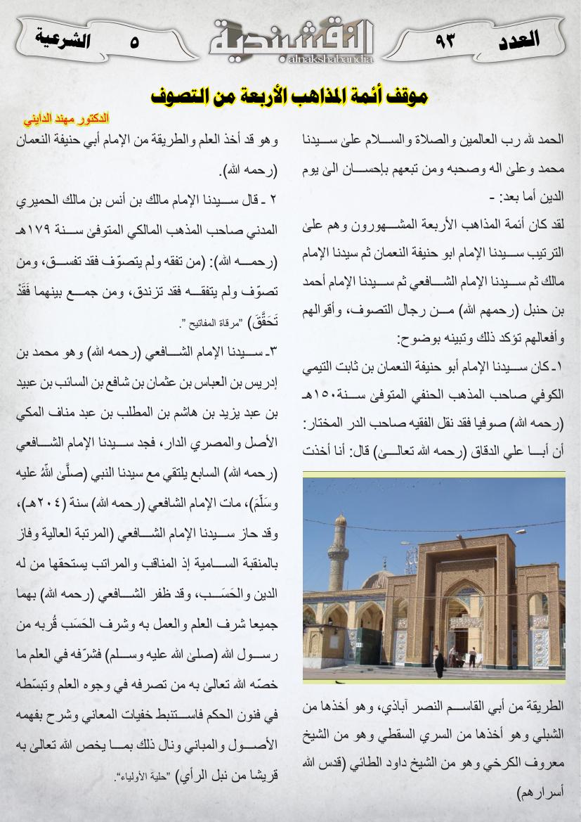العدد الثالث و التسعون موقف أئمة المذاهب الأربعة من التصوف 24 فبراير، 201525 يونيو، 2019 موقف أئمة المذاهب الأربعة من التصوف