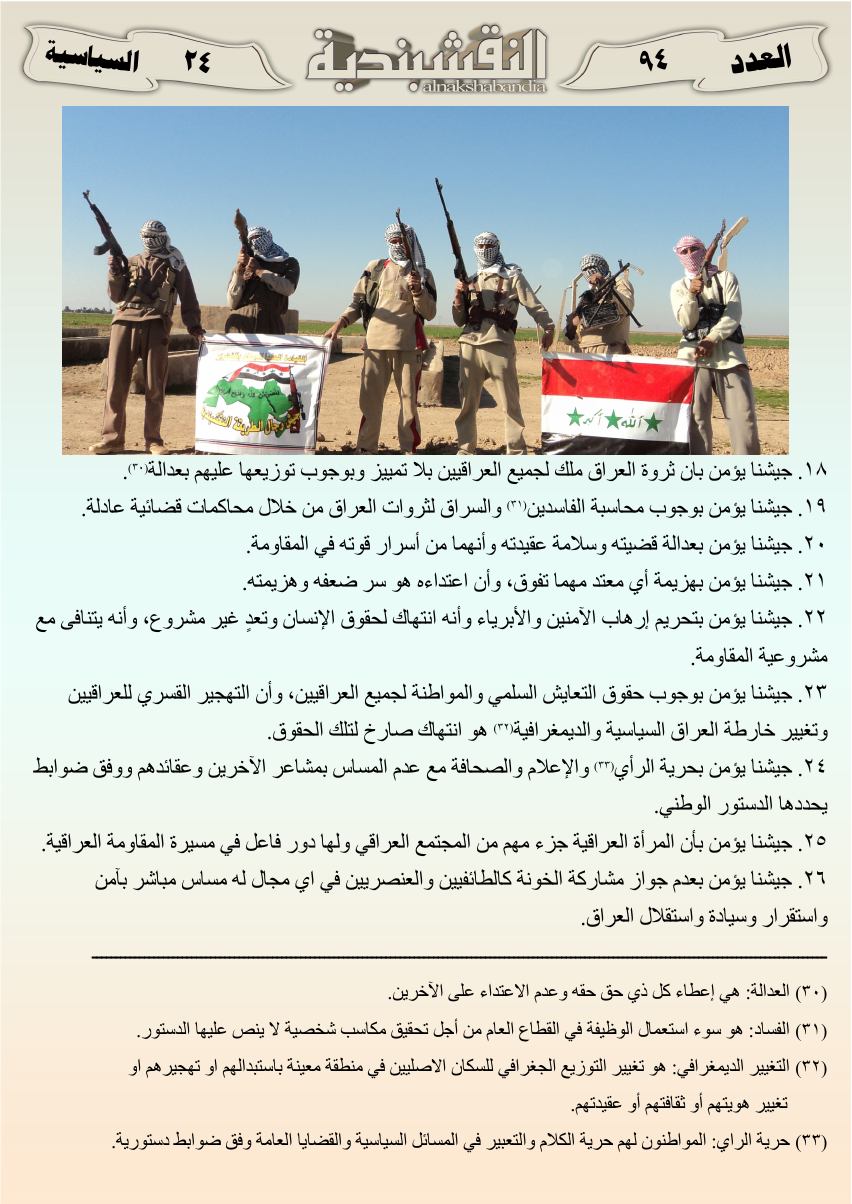 العدد الرابع و التسعون منهج وعقيدة جيش رجال الطريقة النقشبندية (الحلقة الثانية) 19 سبتمبر، 201625 يونيو، 2019 منهج وعقيدة جيش رجال الطريقة النقشبندية (الحلقة الثانية)