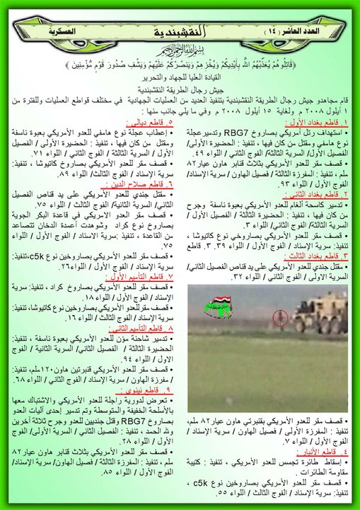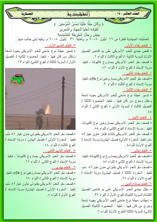 جانب من العمليات الجهادية لجيش رجال الطريقة النقشبندية للفترة من 1 أيول 2008 م ولغاية 31 أيول 2008 م