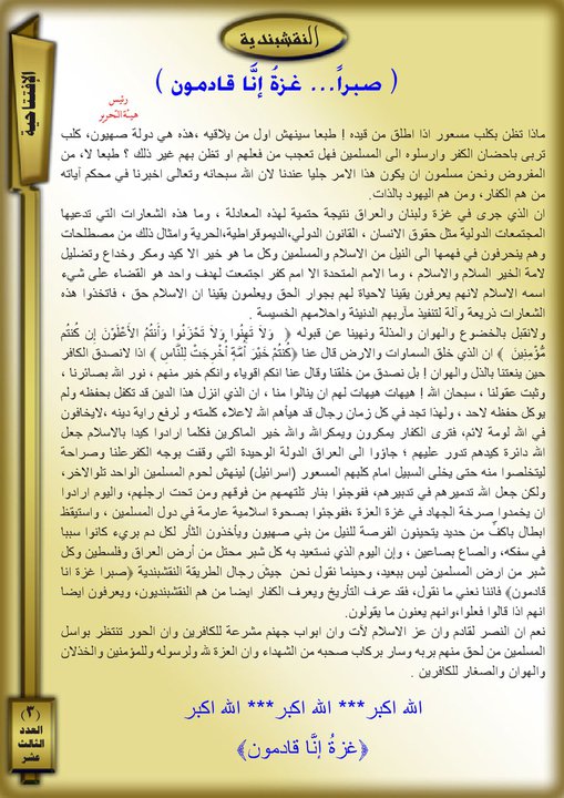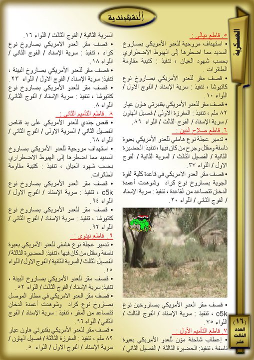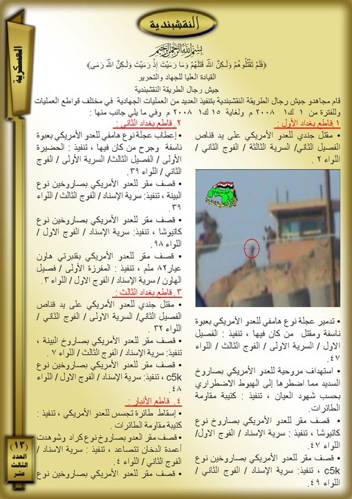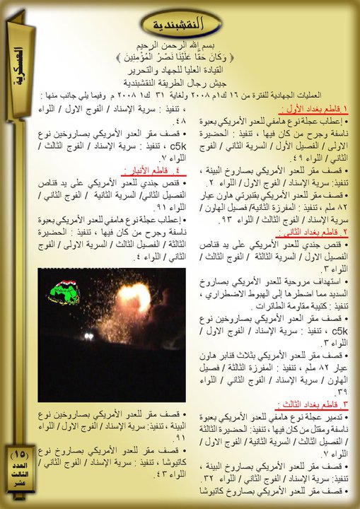 جانب من العمليات الجهادية لجيش رجال الطريقة النقشبندية للفترة من 1 كانون الاول 2008 م ولغاية 31 كانون الاول 2008 م
