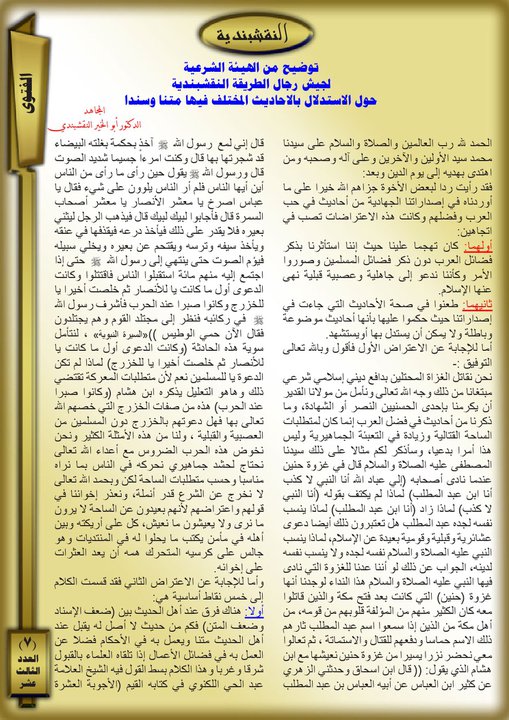 توضيح من الهيئة الشرعية لجيش رجال الطريقة النقشبندية حول الاستدلال بالاحاديث المختلفة فيها متناً وسنداً