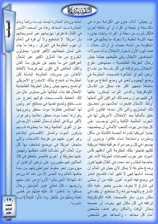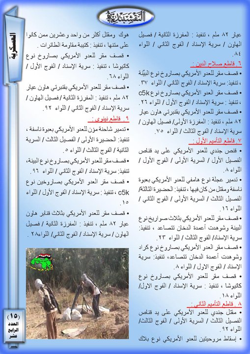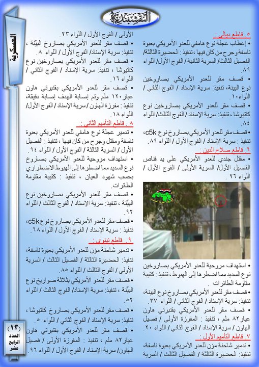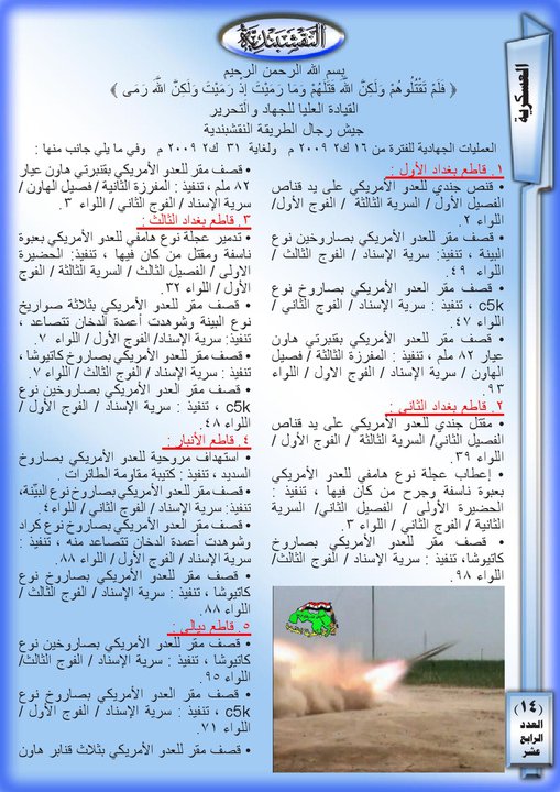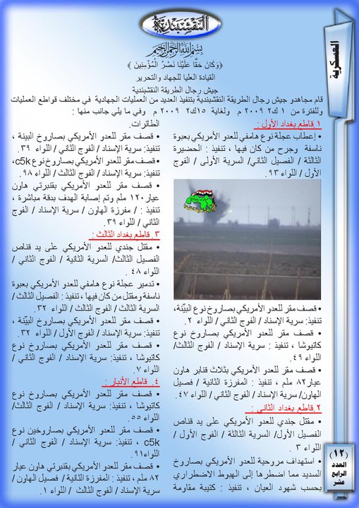 جانب من العمليات الجهادية لجيش رجال الطريقة النقشبندية للفترة من 1 ك2 2009 م ولغاية 30 ك2 2009 م