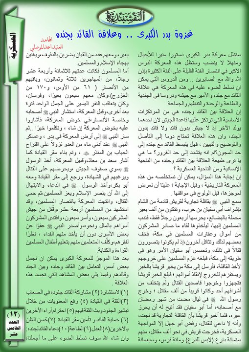 العدد الخامس عشر غزوة بدر الكبرى وعلاقة القائد بجنده 19 مارس، 201225 يونيو، 2019 غزوة بدر الكبرى وعلاقة القائد بجنده ... قراءة المزيد
