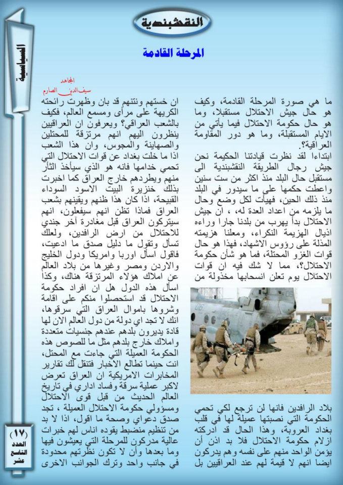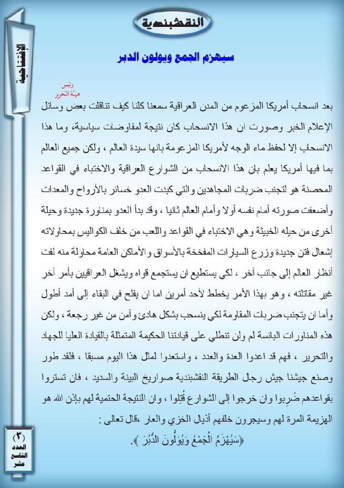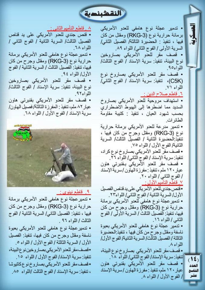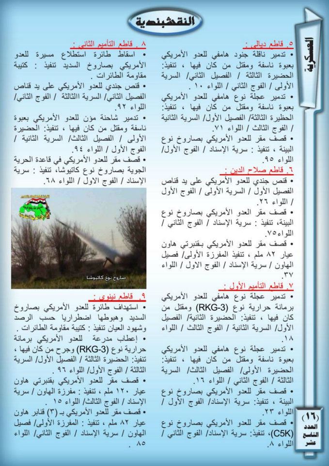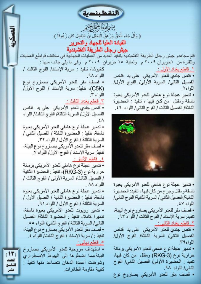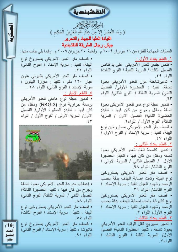 جانب من العمليات الجهادية لجيش رجال الطريقة النقشبندية للفترة من 1حزيران 2009 الى 30 حزيران 2009