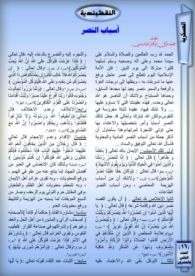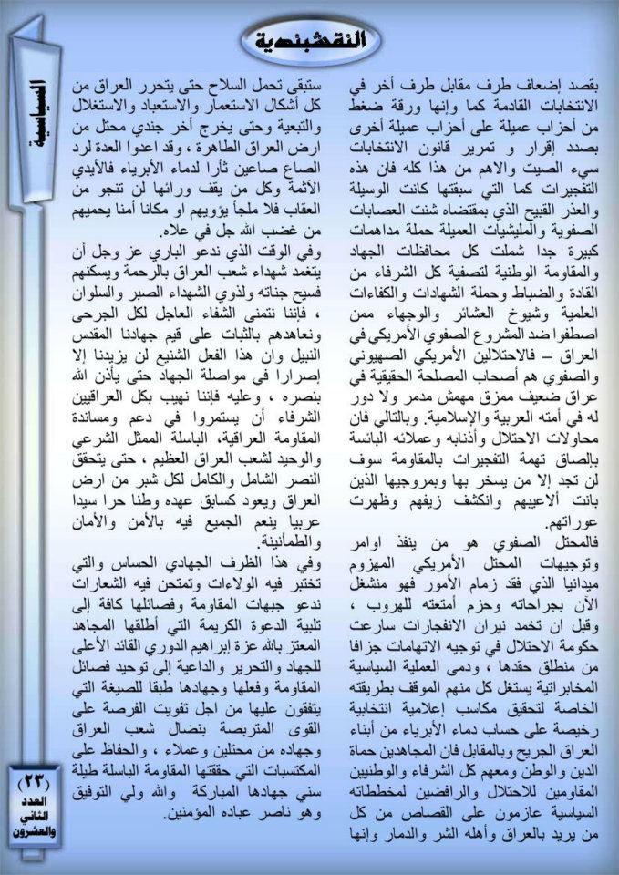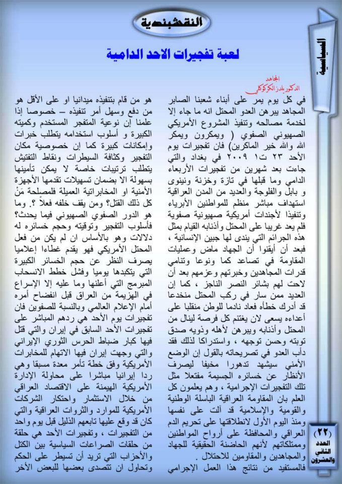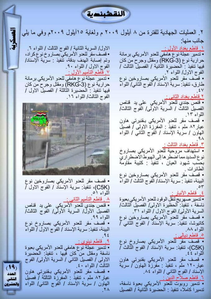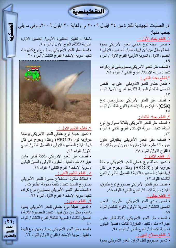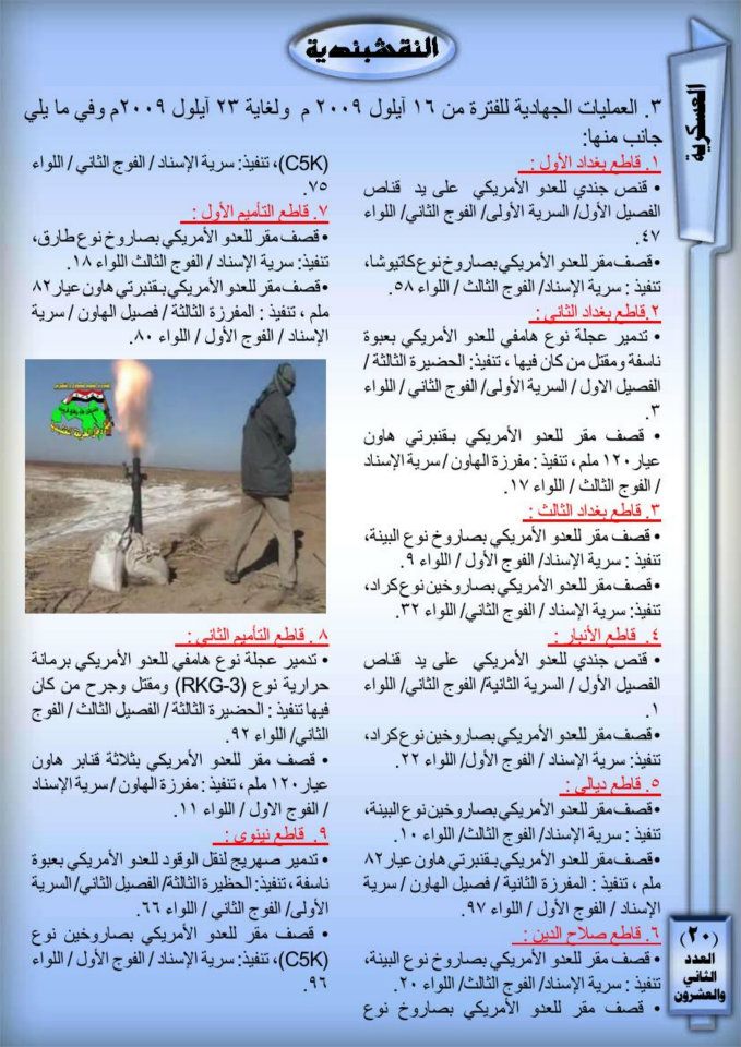 جانب من العمليات الجهادية لجيش رجال الطريقة النقشبندية للفترة من 1 أيلول 2009 م ولغاية 30 أيلول 2009 م