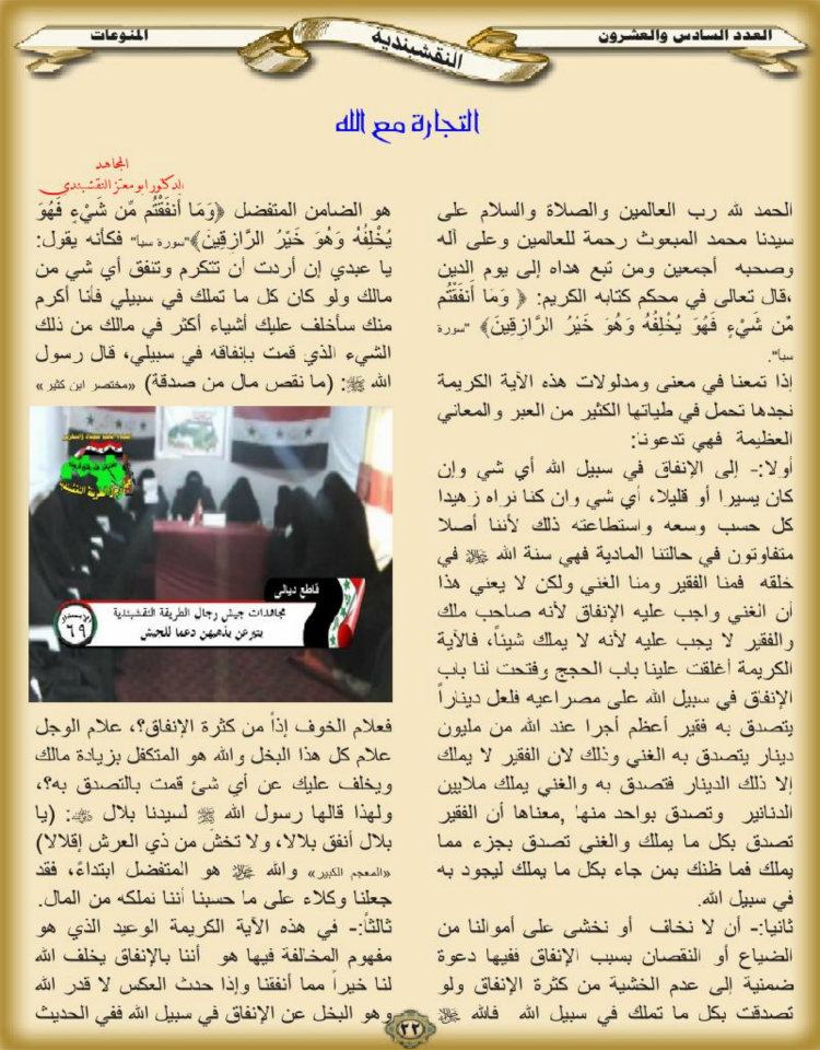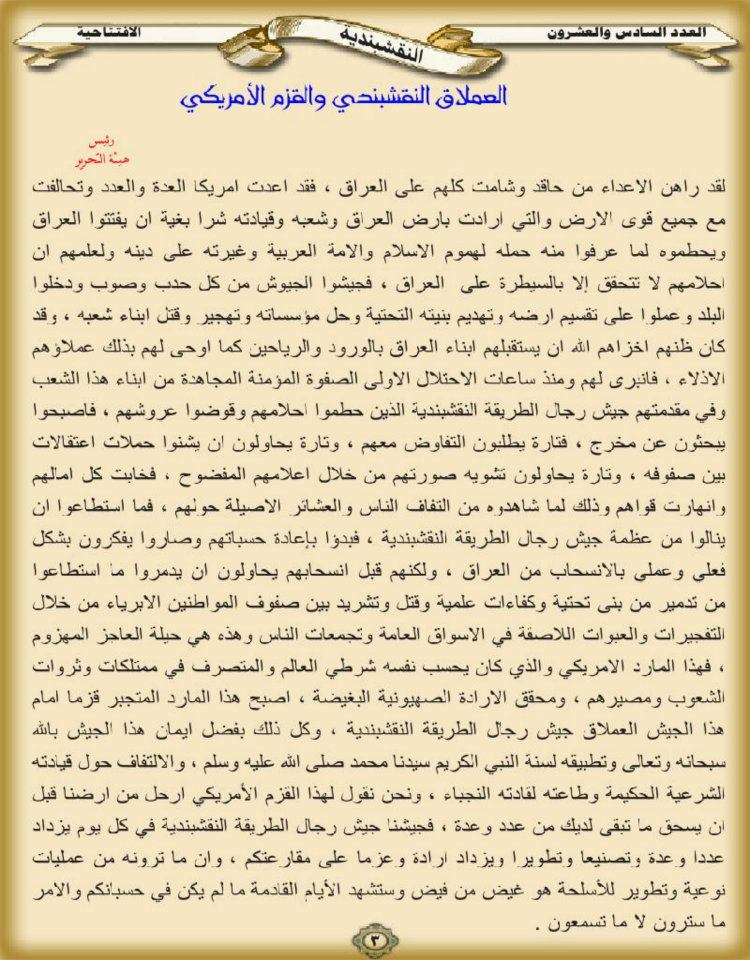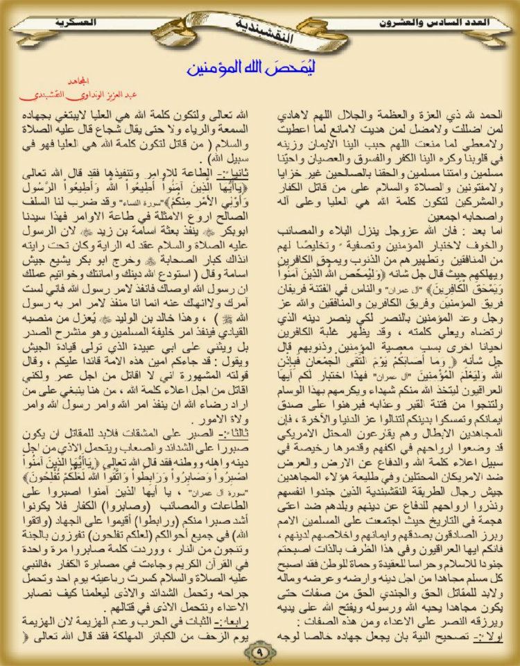 العدد السادس والعشرون جانب من العمليات الجهادية لجيش رجال الطريقة النقشبندية للفترة من 1 كانون الثاني 2010 م ولغاية 31 كانون الثاني 2010 م 20 مارس، 201225 يونيو، 2019 جانب من العمليات الجهادية لجيش رجال الطريقة النقشبندية للفترة من 1 كانون الثاني 2010 م ولغاية 31 كانون الثاني 2010 م ... قراءة المزيد