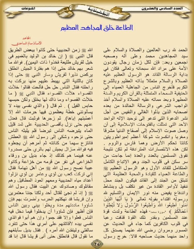 العدد السادس والعشرون الطاعة خلق المجاهد العظيم 20 مارس، 201225 يونيو، 2019 الطاعة خلق المجاهد العظيم ... قراءة المزيد