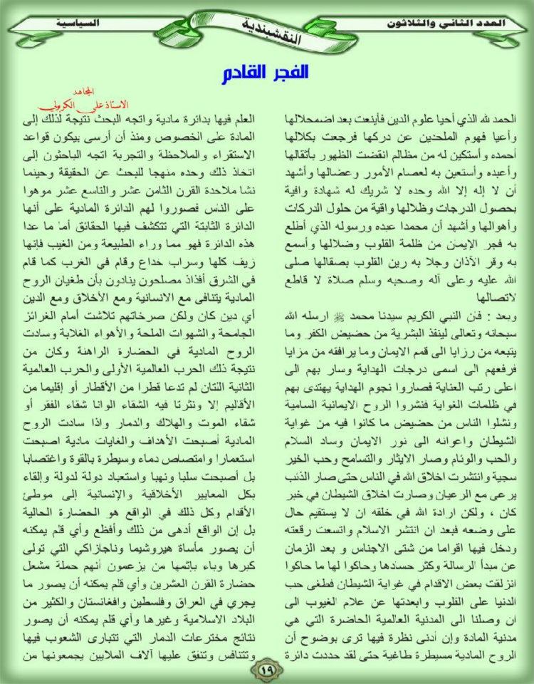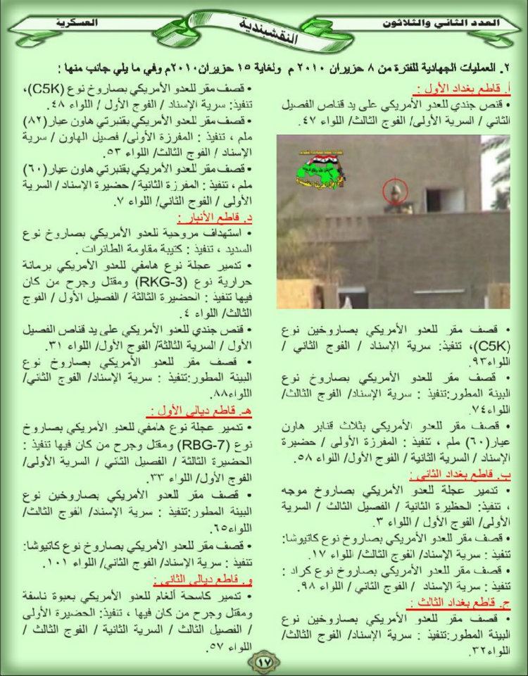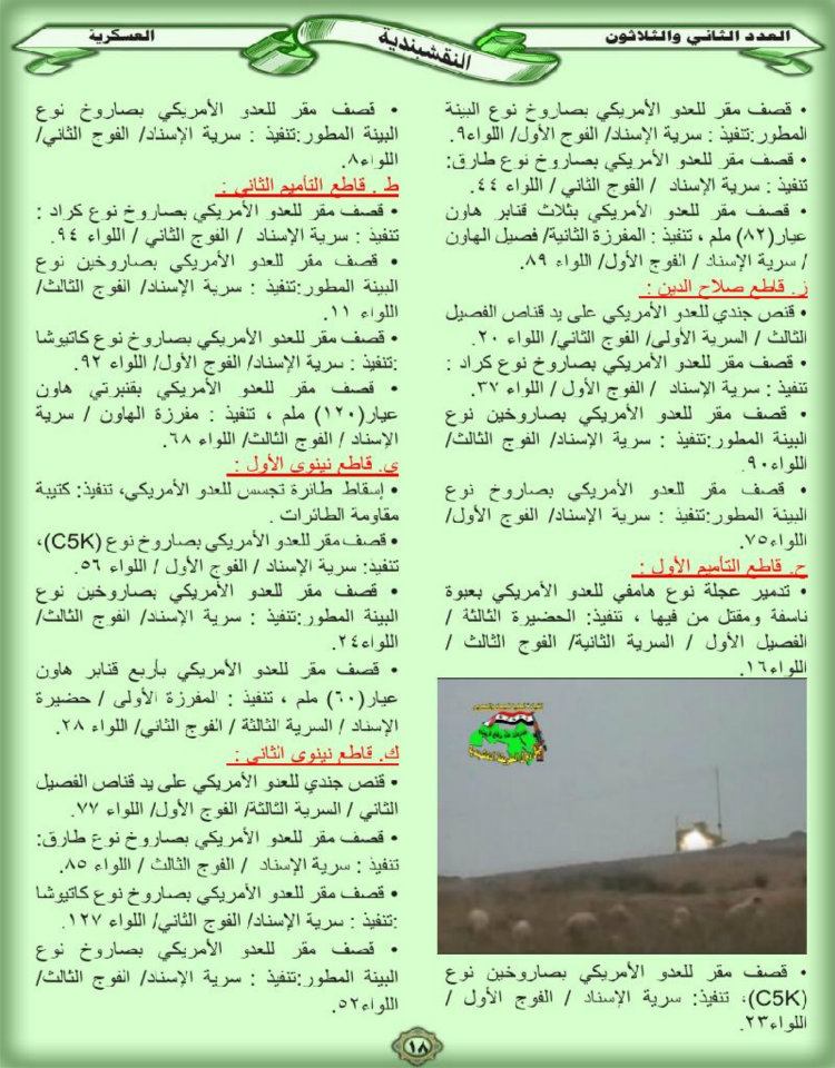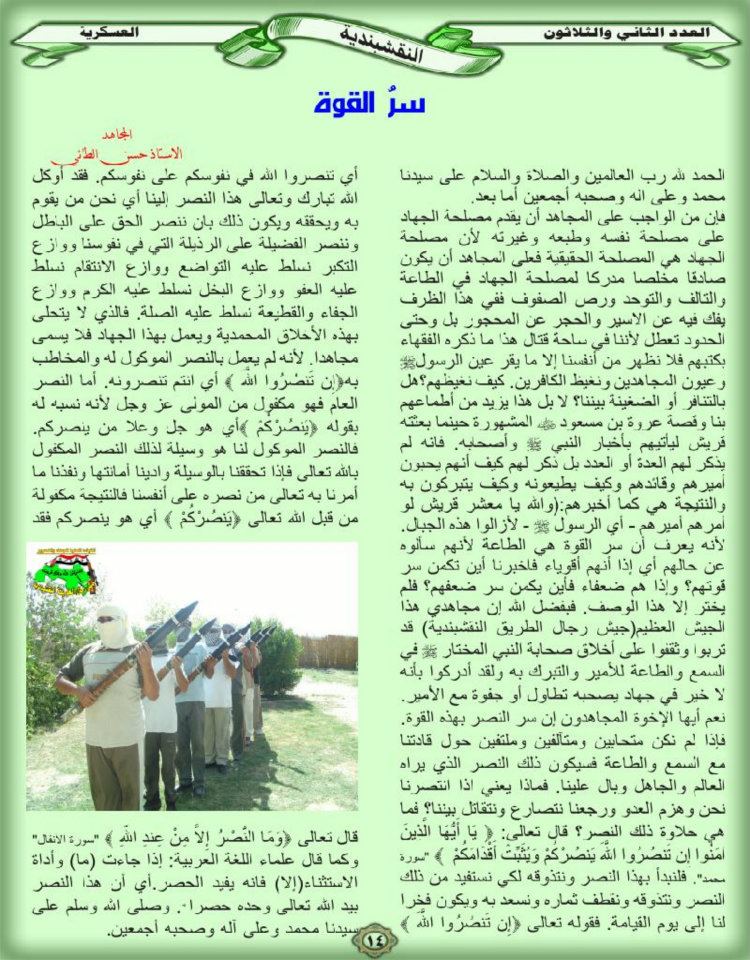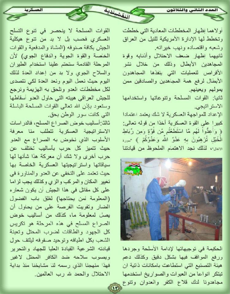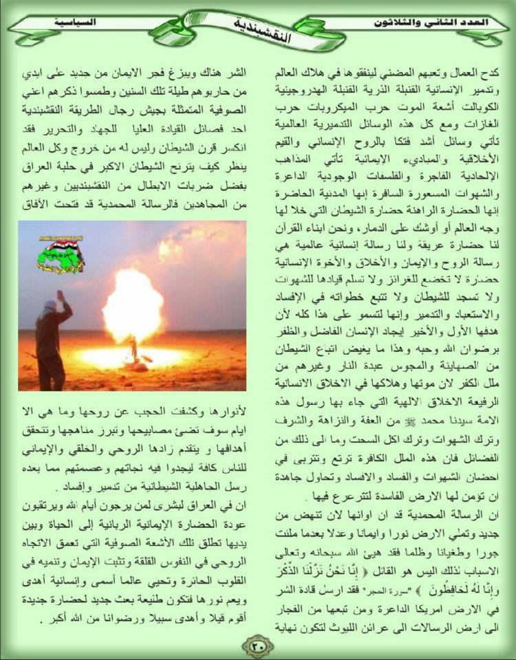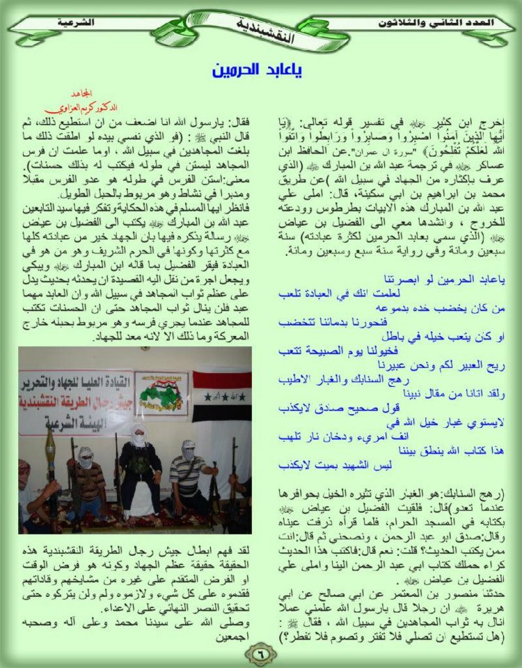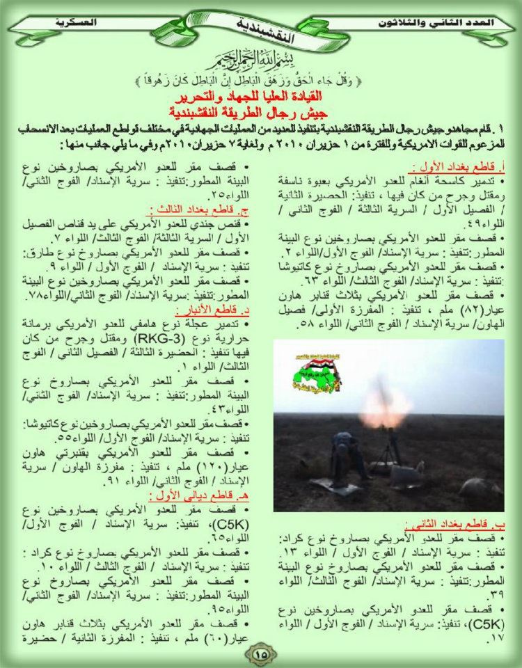 العدد الثاني والثلاثون جانب من العمليات الجهادية لجيش رجال الطريقة النقشبندية للفترة من 1 حزيران 2010 م ولغاية 15 حزيران 2010 م 21 مارس، 201225 يونيو، 2019 جانب من العمليات الجهادية لجيش رجال الطريقة النقشبندية للفترة من 1 حزيران 2010 م ولغاية 15 حزيران 2010 م ... قراءة المزيد