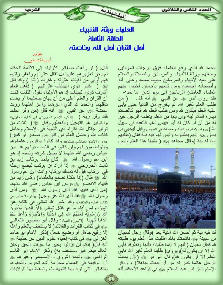العدد الثاني والثلاثون العلماء ورثة الأنبياء ( الحلقة الثامنة ) ( أهل القرآن أهل الله وخاصته ) 21 مارس، 201225 يونيو، 2019 العلماء ورثة الأنبياء الحلقة الثامنة أهل القرآن أهل الله وخاصته ... قراءة المزيد