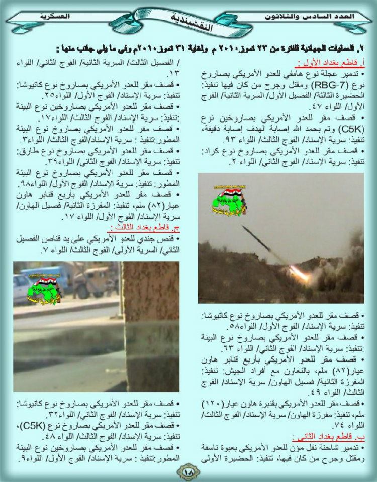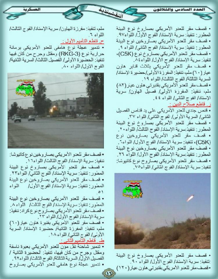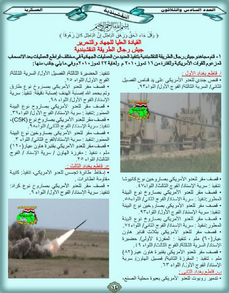 جانب من العمليات الجهادية لجيش رجال الطريقة النقشبندية للفترة من 16 تموز 2010 م ولغاية 22 تموز 2010 م