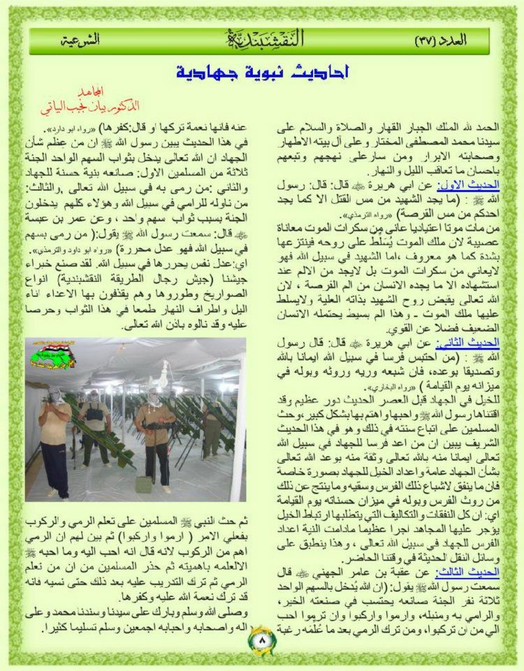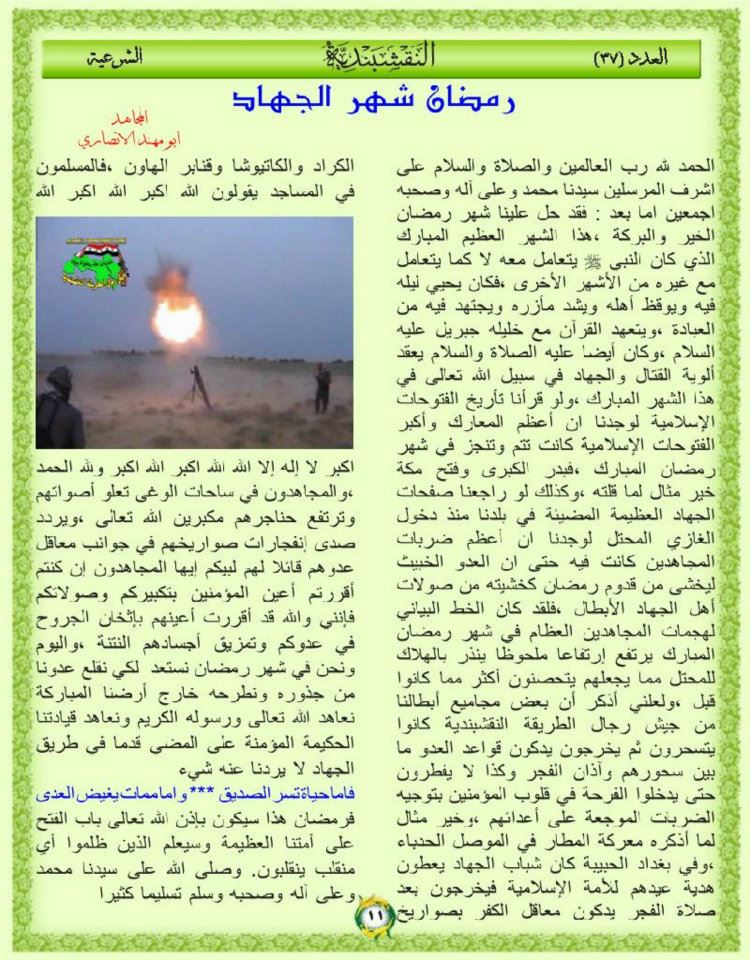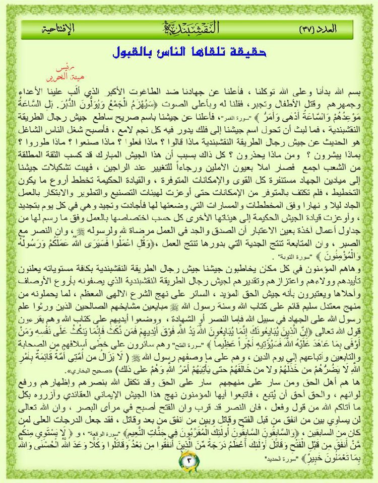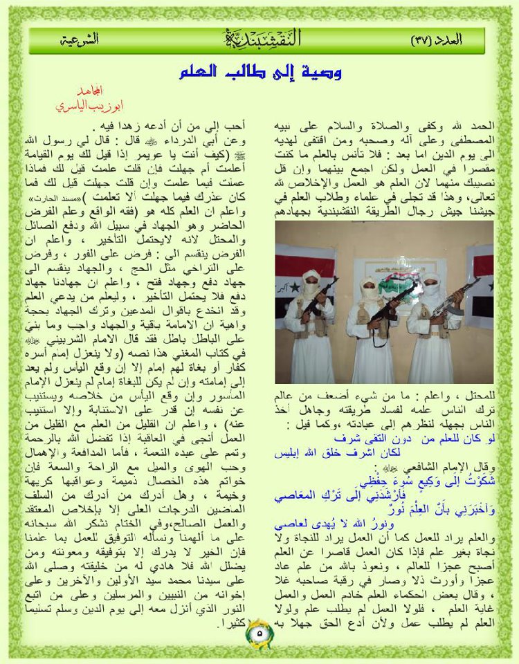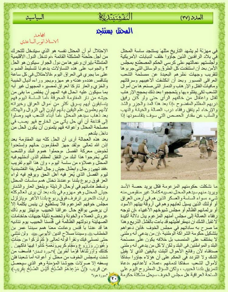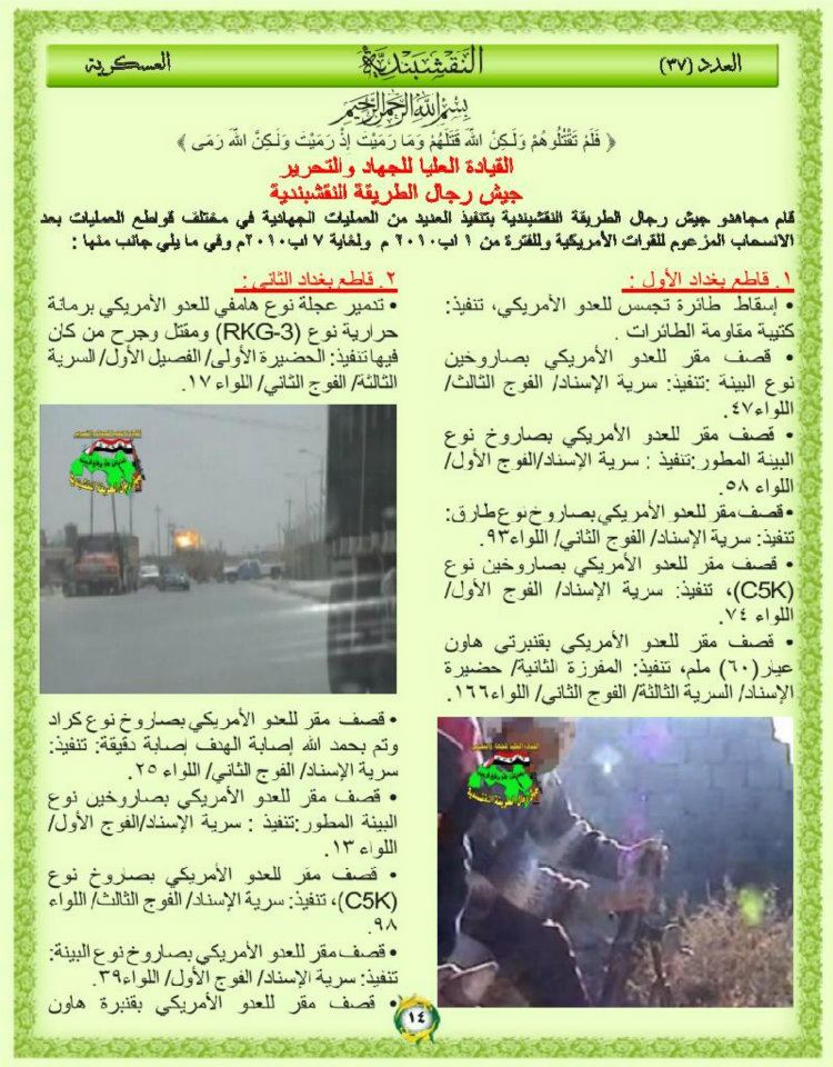 العدد السابع والثلاثون جانب من العمليات الجهادية لجيش رجال الطريقة النقشبندية للفترة من 1آب 2010 م ولغاية 7 آب 2010 م 3 مارس، 201225 يونيو، 2019 جانب من العمليات الجهادية لجيش رجال الطريقة النقشبندية للفترة من 1آب 2010 م ولغاية 7 آب 2010 م ... قراءة المزيد