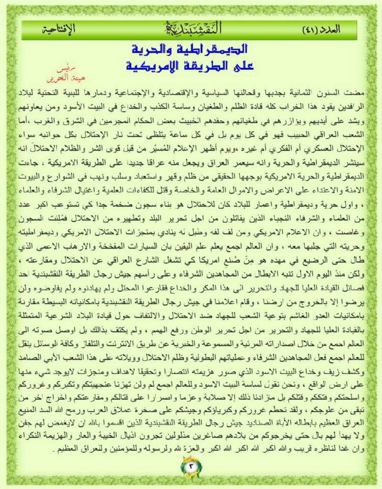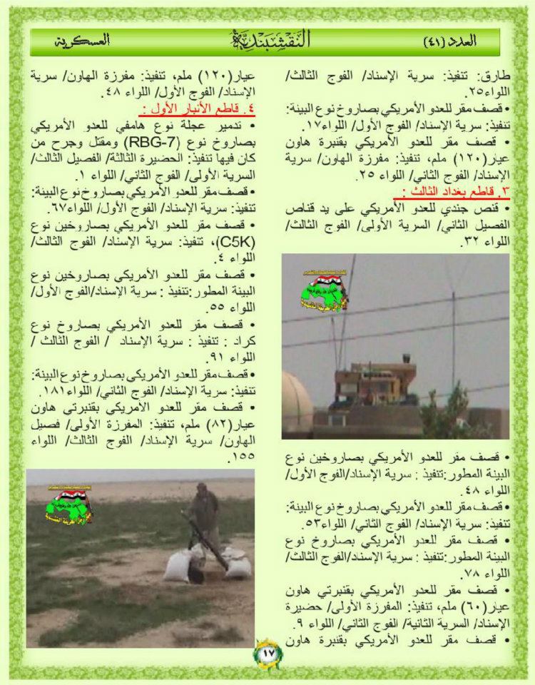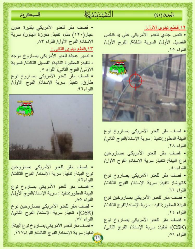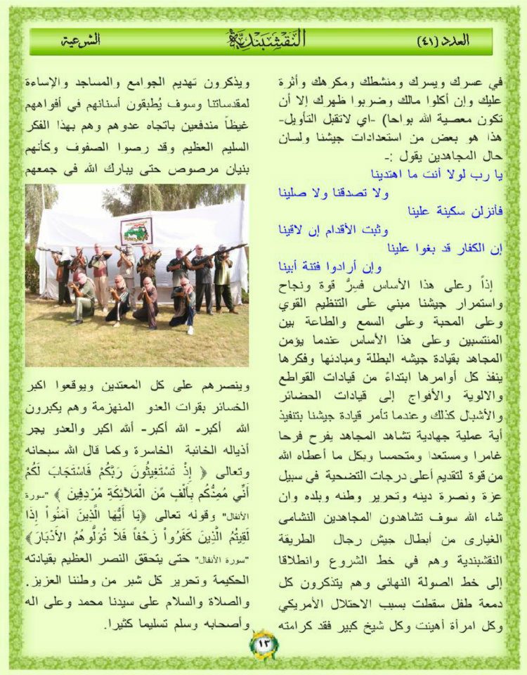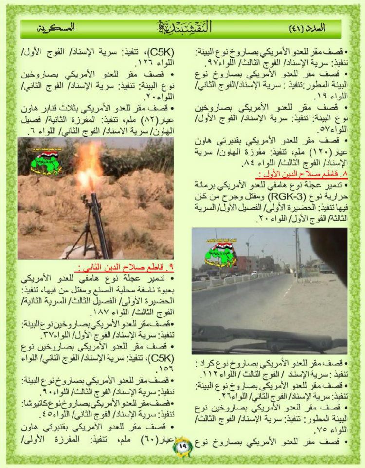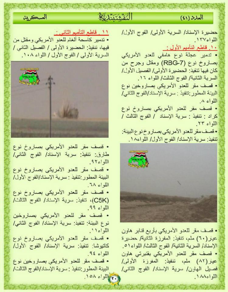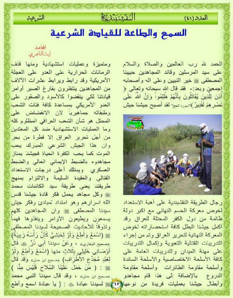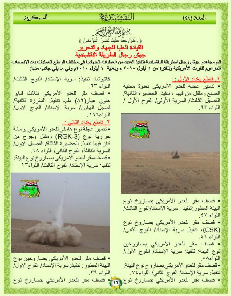 جانب من العمليات الجهادية لجيش رجال الطريقة النقشبندية للفترة من 1 ايلول 2010م الى 7 ايلول 2010م