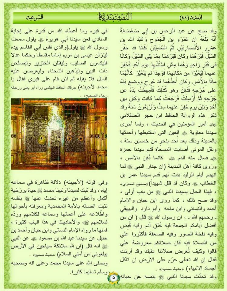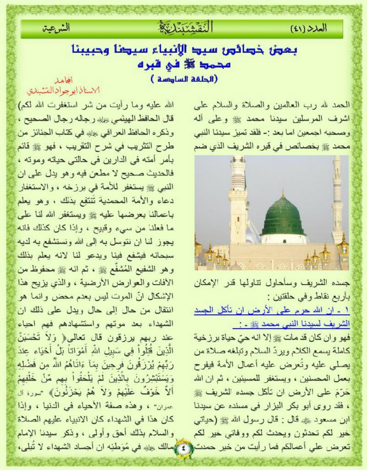 بعض خصائص سيد الانبياءسيدنا وحبيبنا محمد صلى الله عليه وسلم في قبره الحلقة السادسة