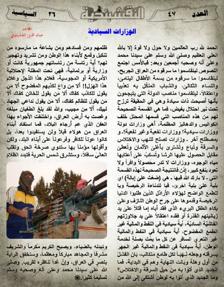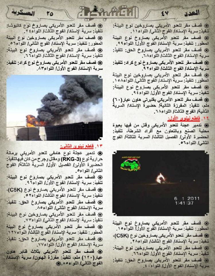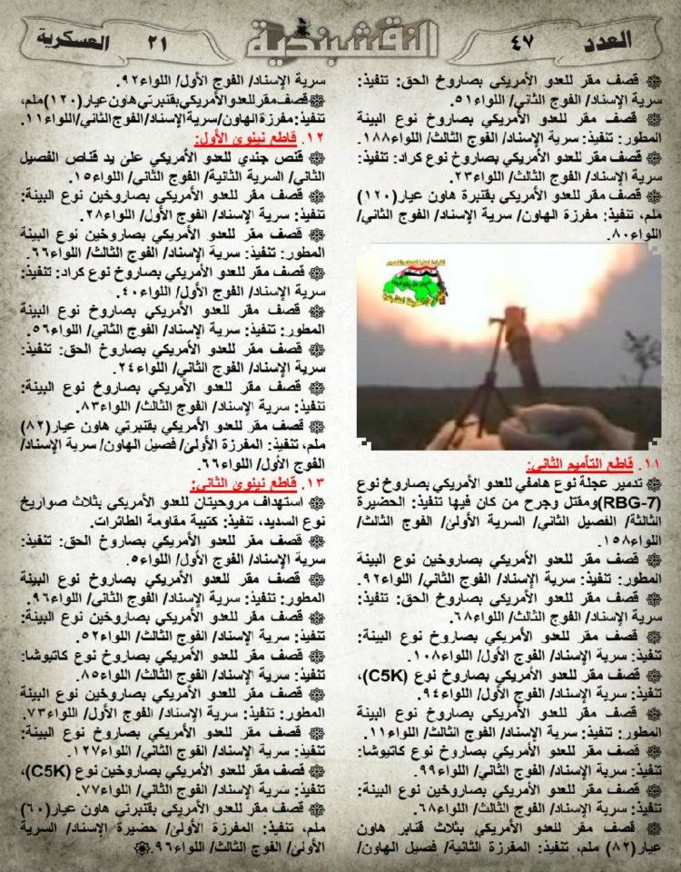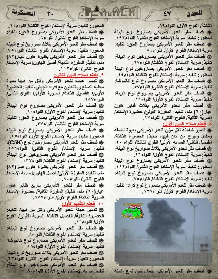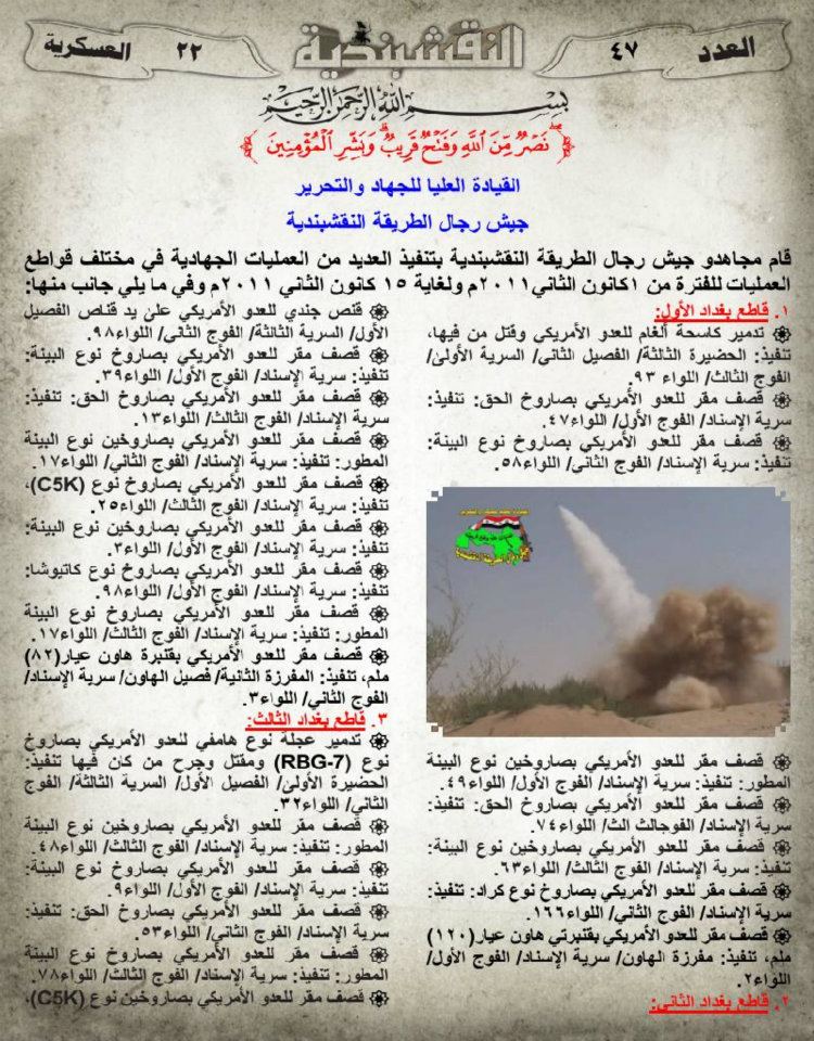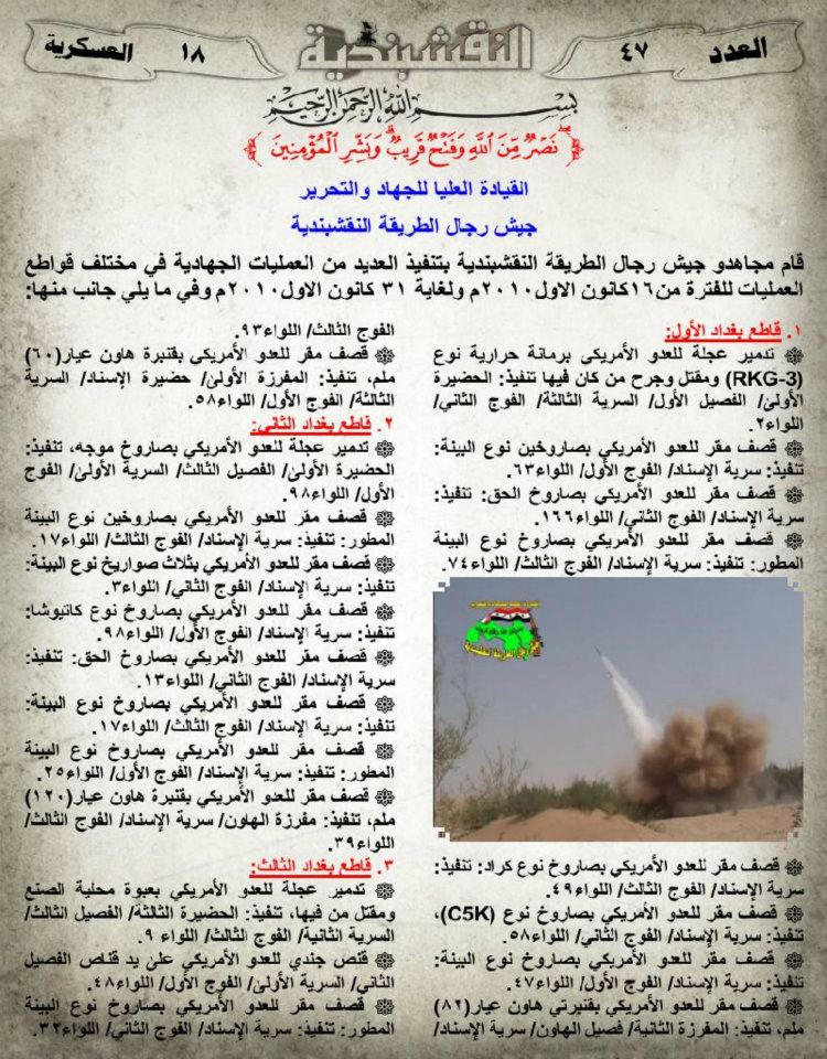 جانب من العمليات الجهادية لجيش رجال الطريقة النقشبندية للفترة من 16 كانون الاول 2010م الى 15 كانون الثاني 2010م