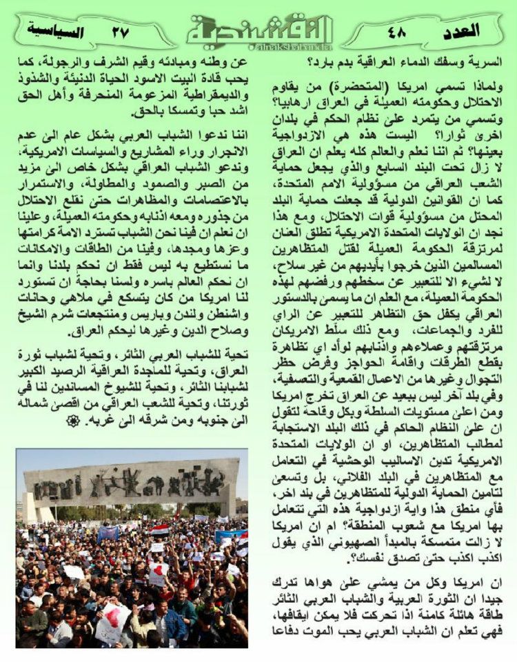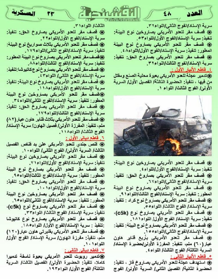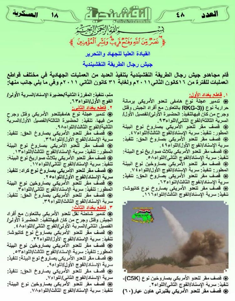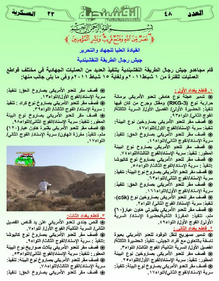 جانب من العمليات الجهادية لجيش رجال الطريقة النقشبندية للفترة من 16 كانون الثاني 2011 الى 15 شباط 2011