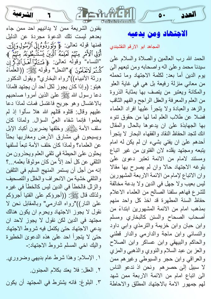 العدد الخمسون أسئلة تجيب عنها الهيئة الشرعية لجيش رجال الطريقة النقشبندية 21 مارس، 201225 يونيو، 2019 أسئلة تجيب عنها الهيئة الشرعية لجيش رجال الطريقة النقشبندية ... قراءة المزيد