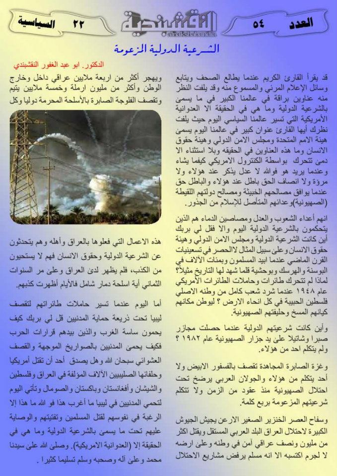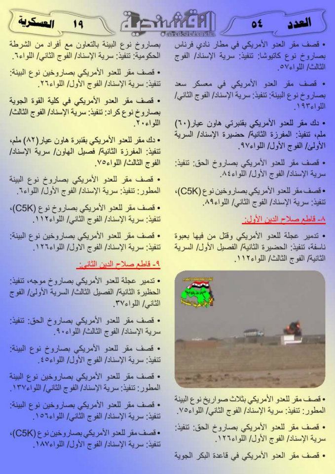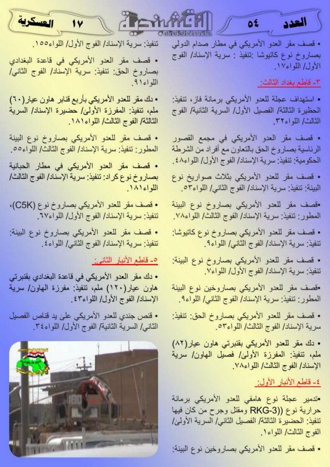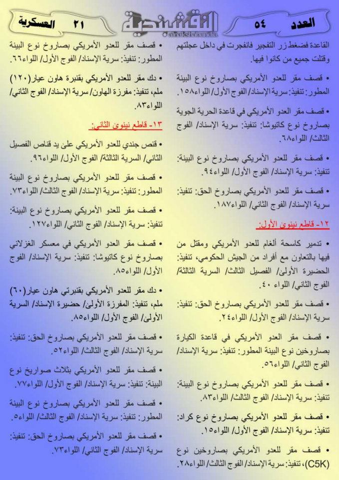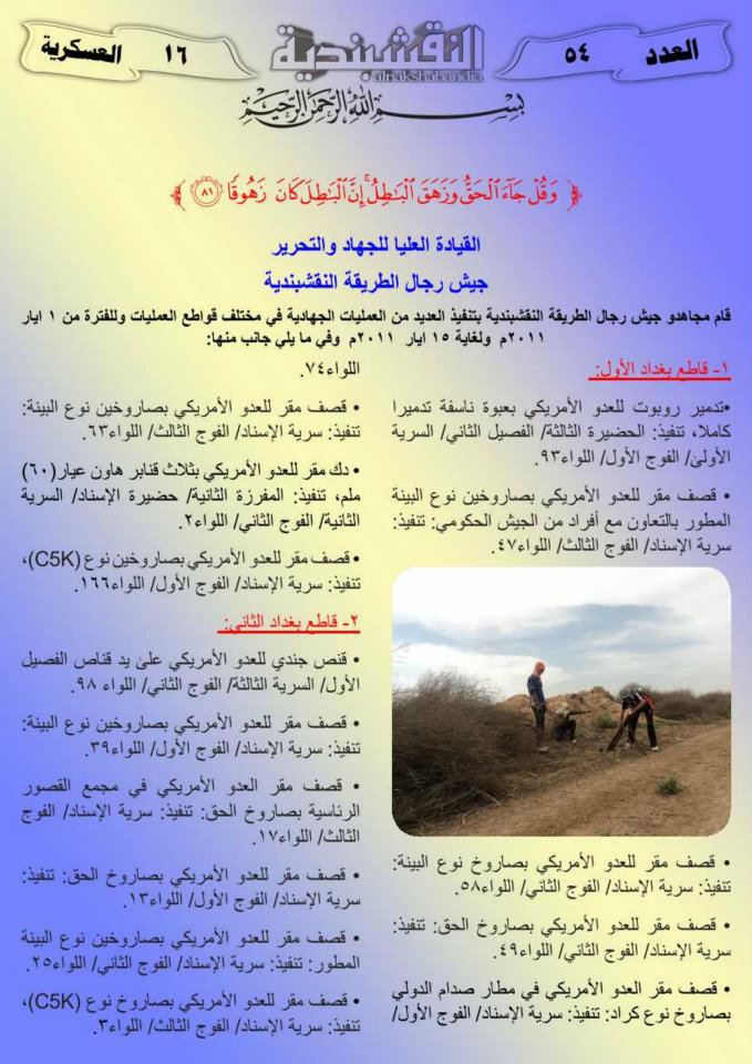 العدد الرابع والخمسون جانب من العمليات الجهادية لجيش رجال الطريقة النقشبندية للفترة من 1 آيار2011 الى 15 ايار2011 20 مارس، 201225 يونيو، 2019 جانب من العمليات الجهادية لجيش رجال الطريقة النقشبندية للفترة من 1 آيار2011 الى 15 ايار2011 ... قراءة المزيد