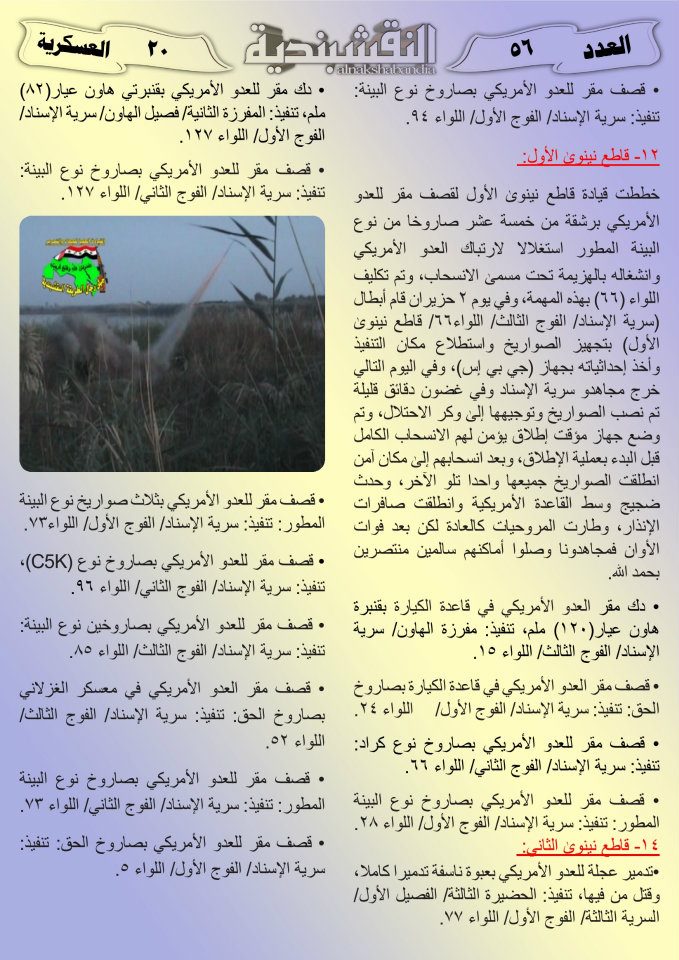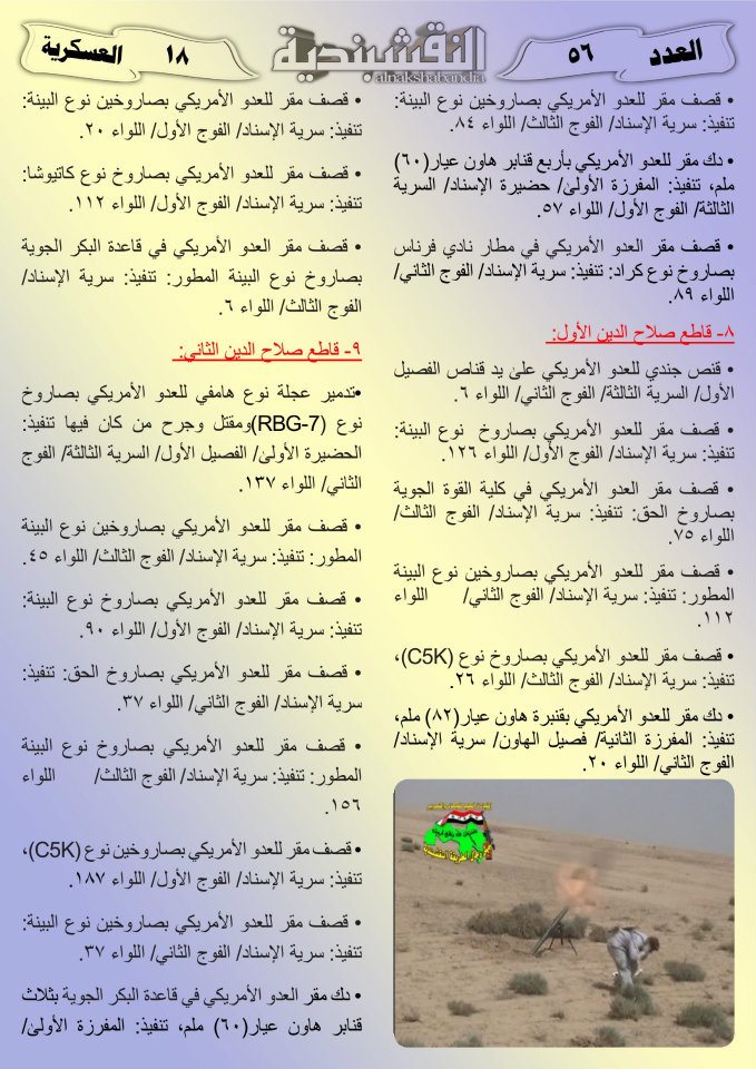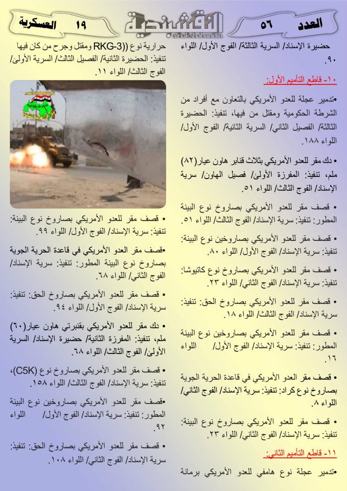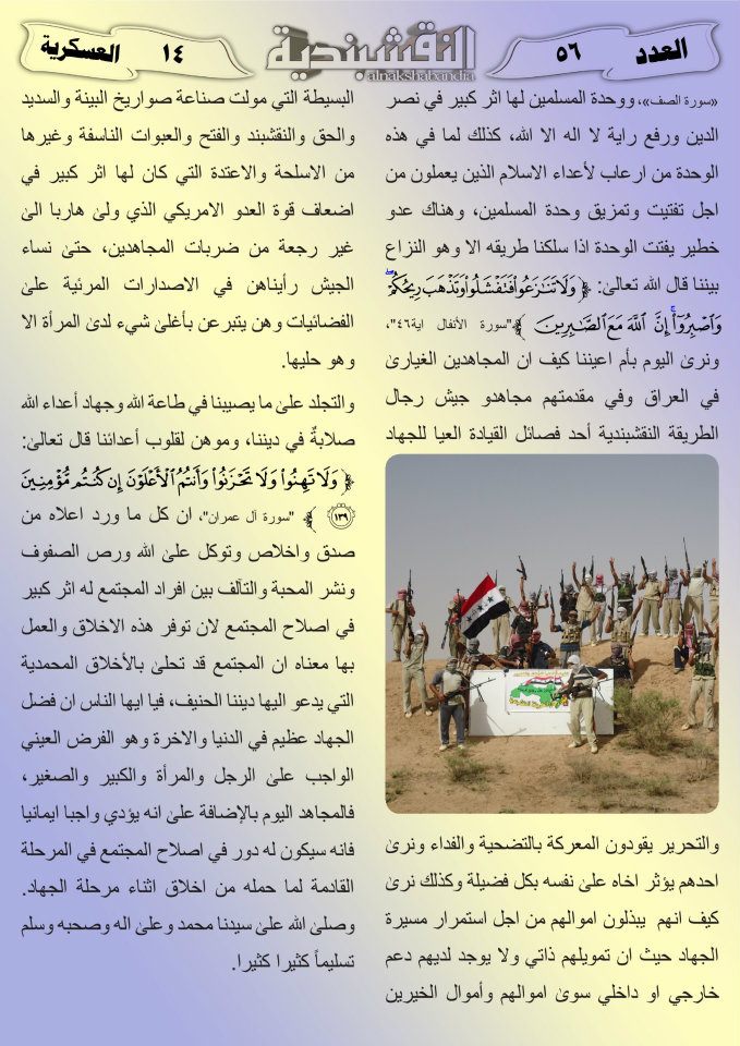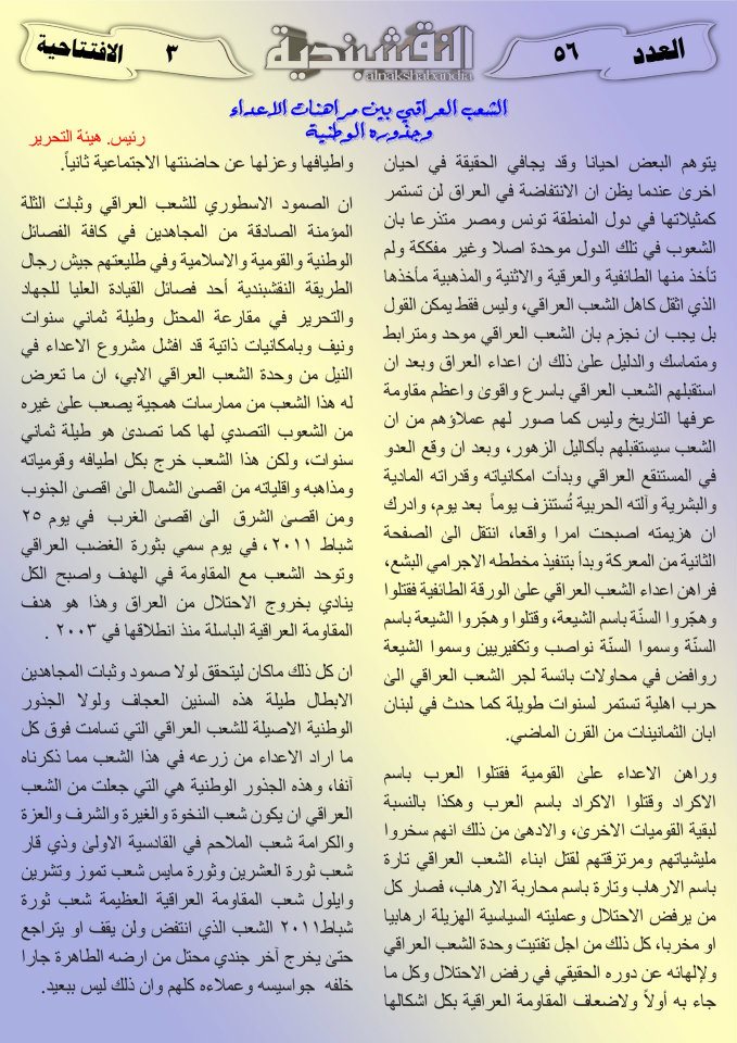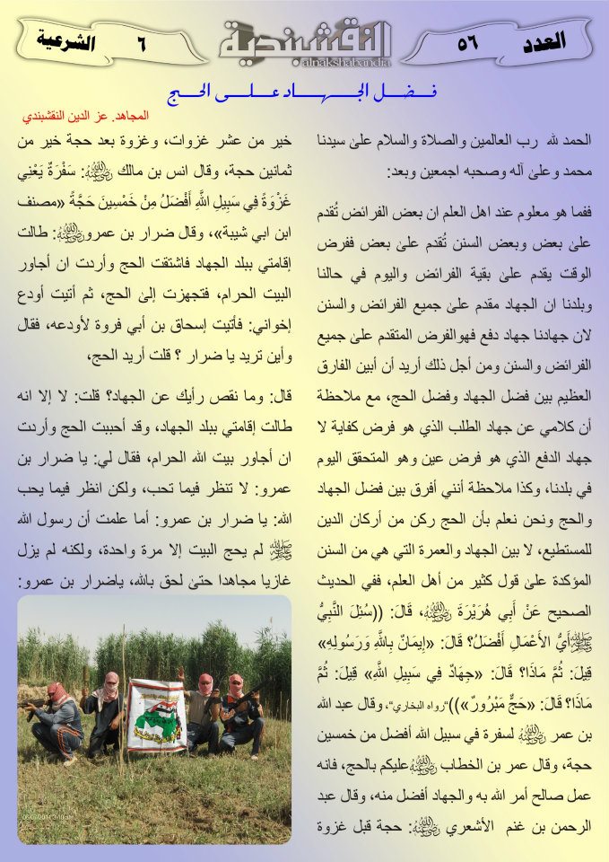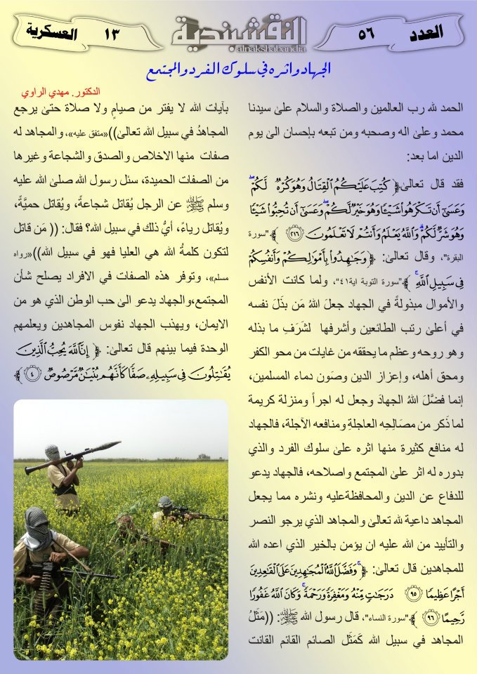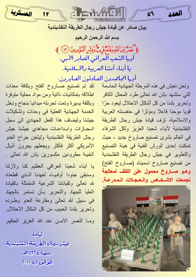 العدد السادس والخمسون جانب من العمليات الجهادية لجيش رجال الطريقة النقشبندية للفترة من 1حزيران 2011 الى 15حزيران 2011 19 مارس، 201225 يونيو، 2019 جانب من العمليات الجهادية لجيش رجال الطريقة النقشبندية للفترة من 1حزيران 2011 الى 15حزيران 2011 ... قراءة المزيد