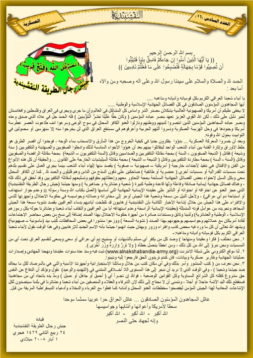 جانب من العمليات الجهادية لجيش رجال الطريقة النقشبندية للفترة من 1 آيار 2008 م ولغاية 15 آيار 2008 م