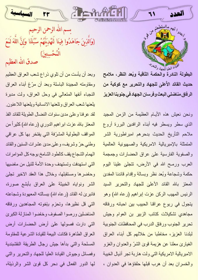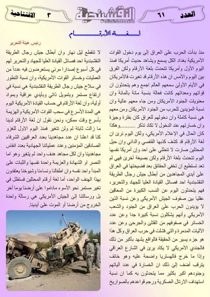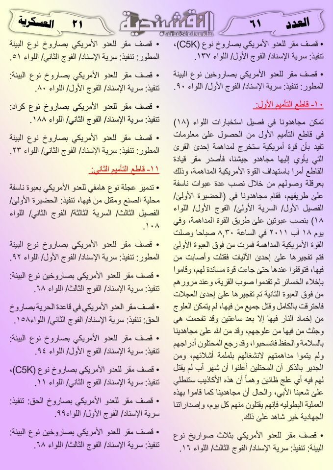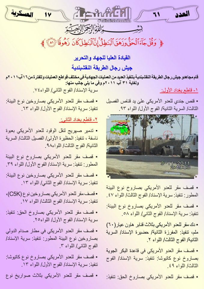 العدد الحادي والستون جانب من العمليات الجهادية للفترة من 16 آب 2011 م ولغاية 31 آب 2011م 7 يناير، 201225 يونيو، 2019 جانب من العمليات الجهادية للفترة من 16 آب 2011 م ولغاية 31 آب 2011م ... قراءة المزيد