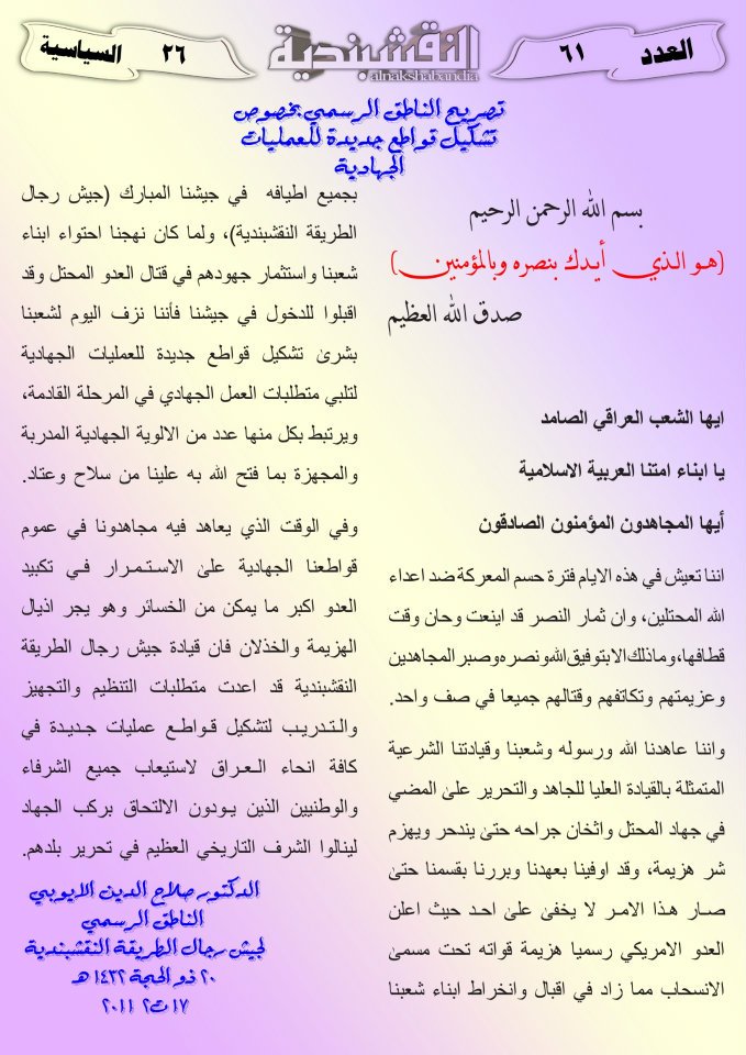 العدد الحادي والستون تصريح الناطق الرسمي بخصوص تشكيل قواطع جديدة للعمليات الجهادية 6 يناير، 201225 يونيو، 2019 تصريح الناطق الرسمي بخصوص تشكيل قواطع جديدة للعمليات الجهادية ... قراءة المزيد