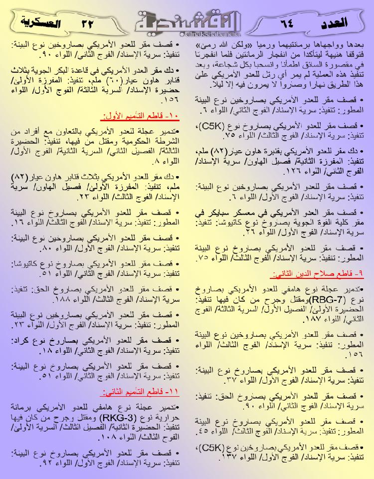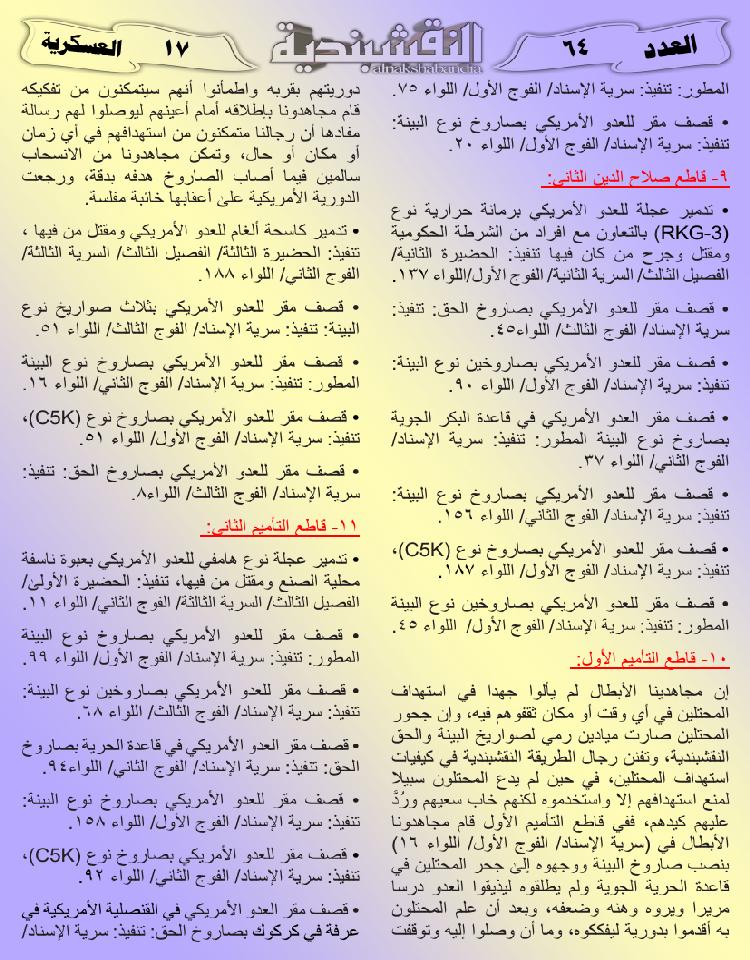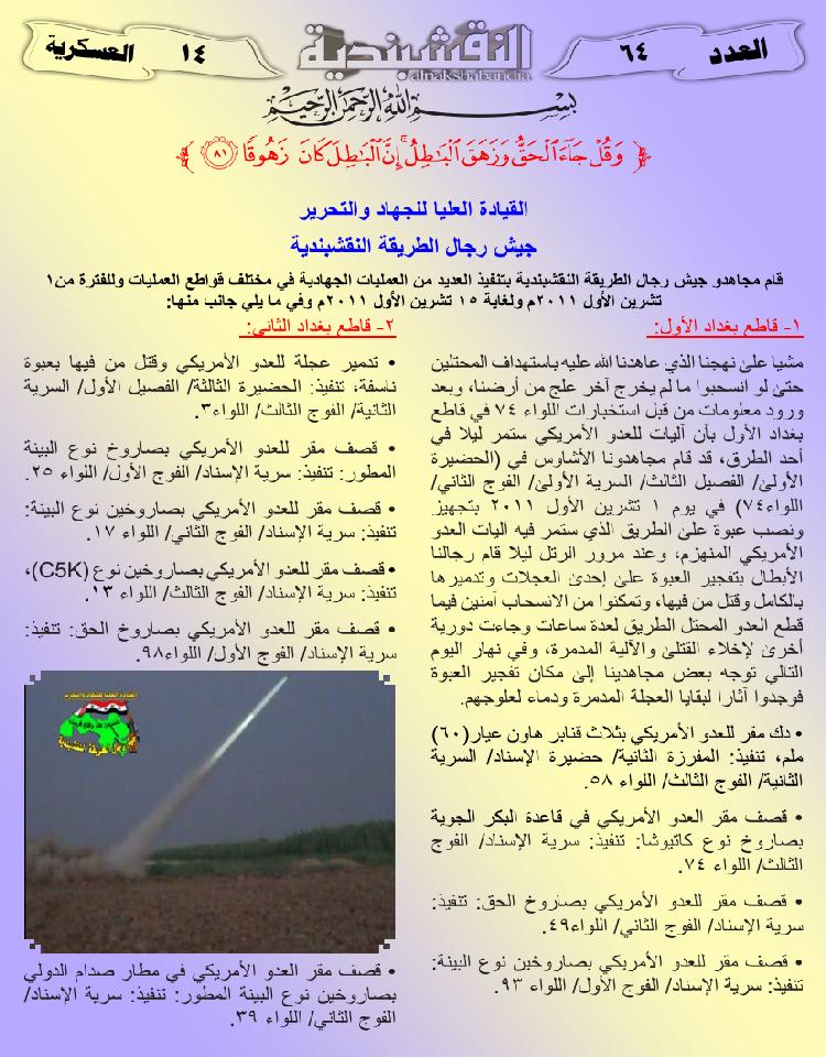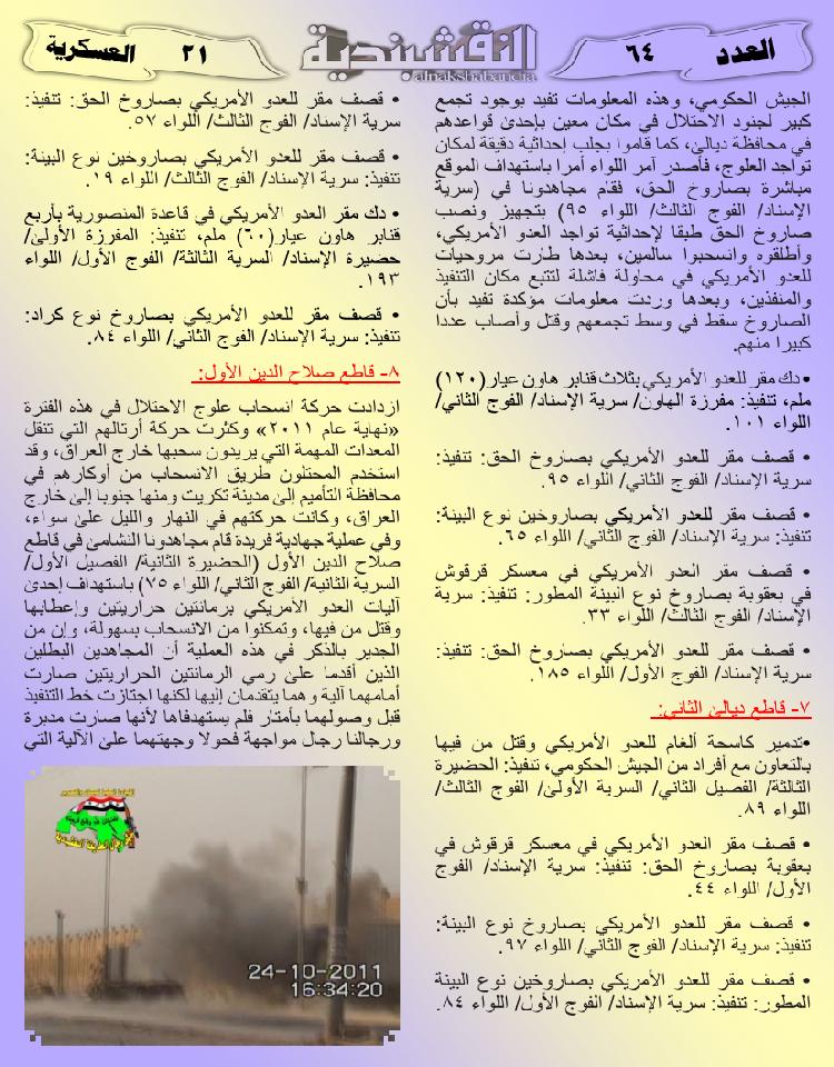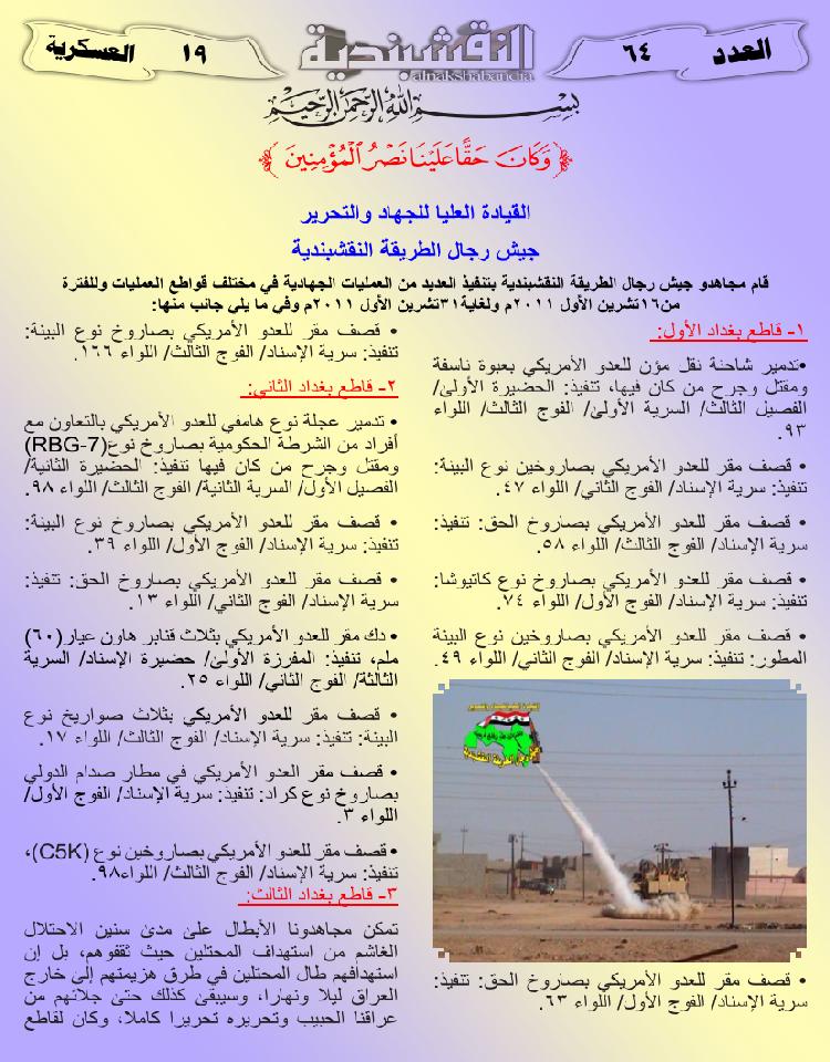 جانب من العمليات الجهادية لجيش رجال الطريقة النقشبندية للفترة من 1 تشرين الاول 2011م الى 31 تشرين الاول 2011 م