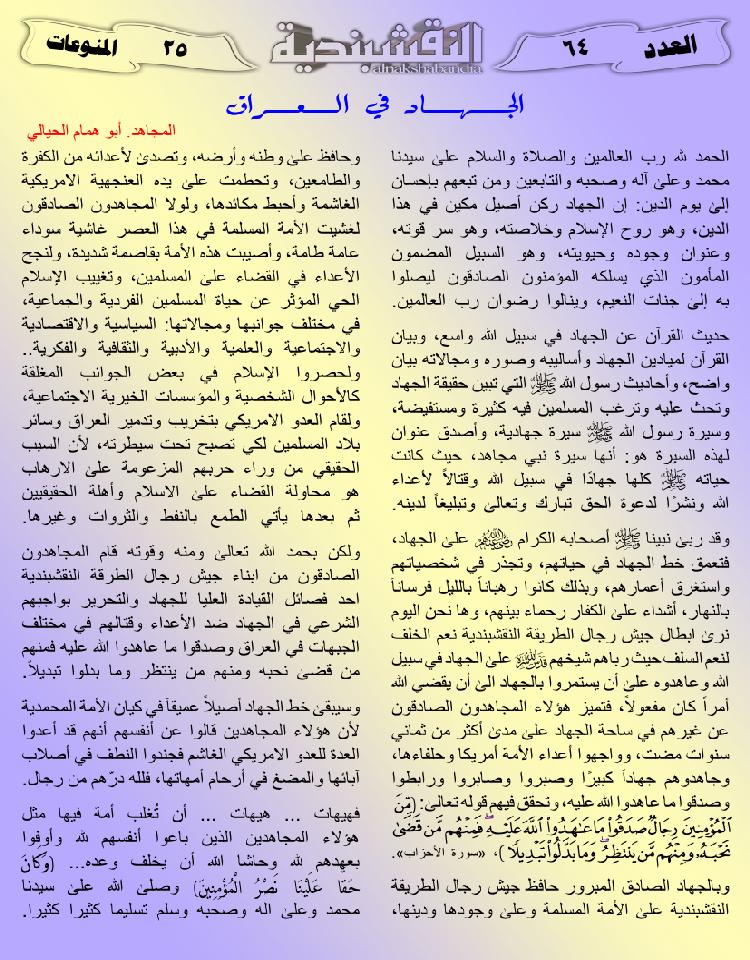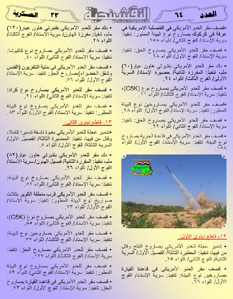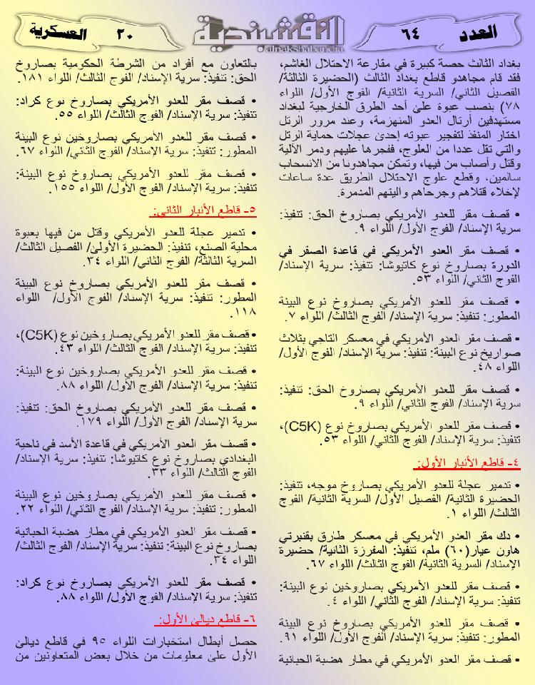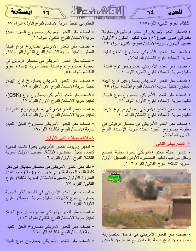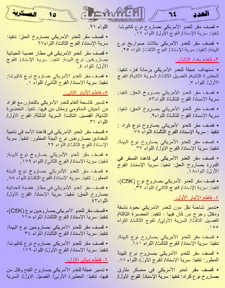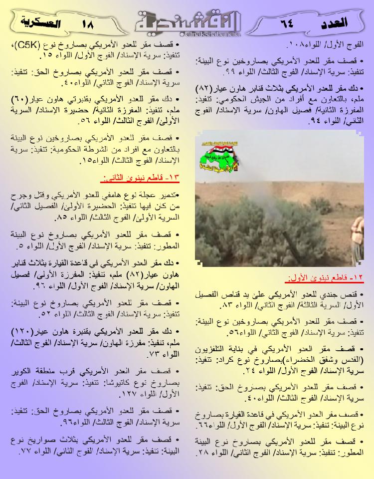 جانب من العمليات الجهادية لجيش رجال الطريقة النقشبندية للفترة من 1 تشرين الاول 2011م الى 31 تشرين الاول 2011 م