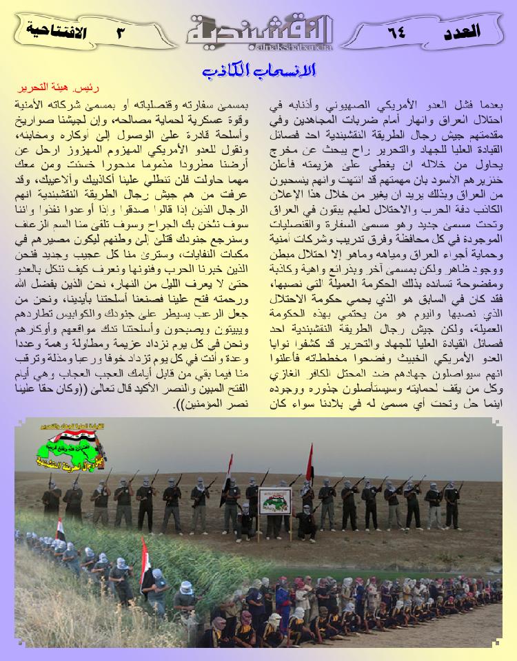 تصريح الدكتور صلاح الدين الأيوبي الناطق الرسمي لجيش رجال الطريقة النقشبندية بصدد مزاعم حكومة الاحتلال