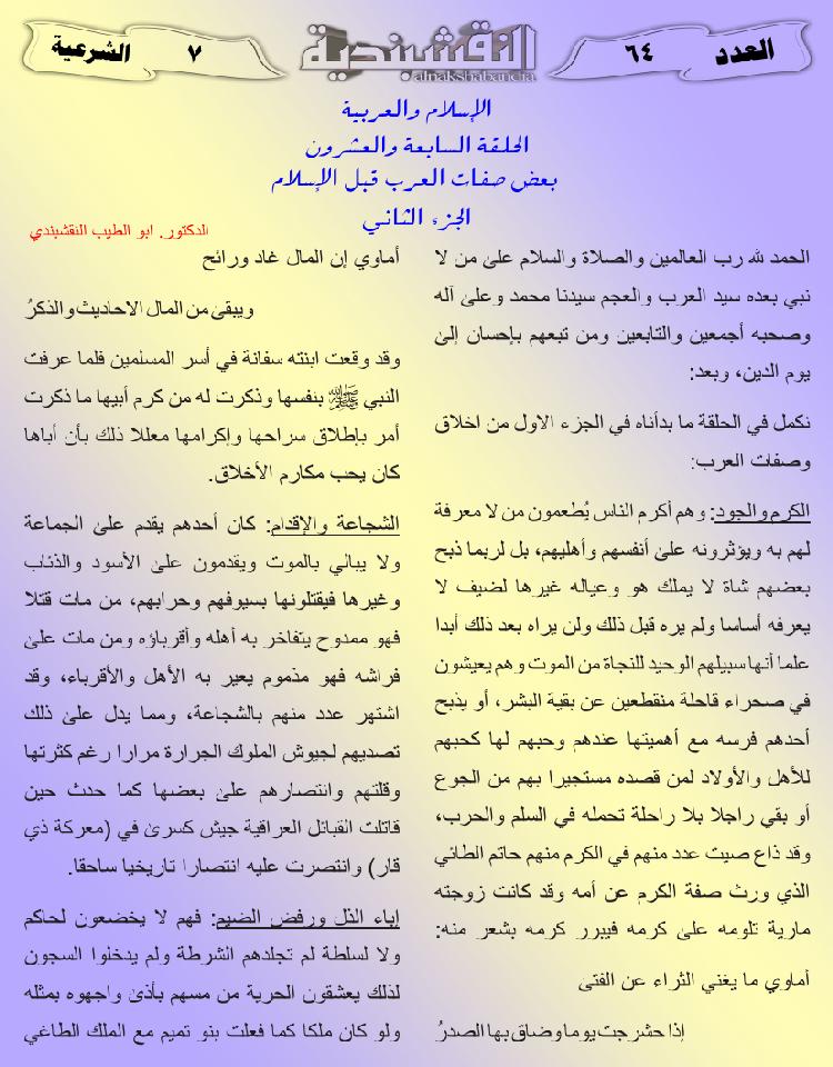 الاسلام والعربية الحلقة السابعة والعشرون – بعض صفات العرب قبل الاسلام الجزء الثاني