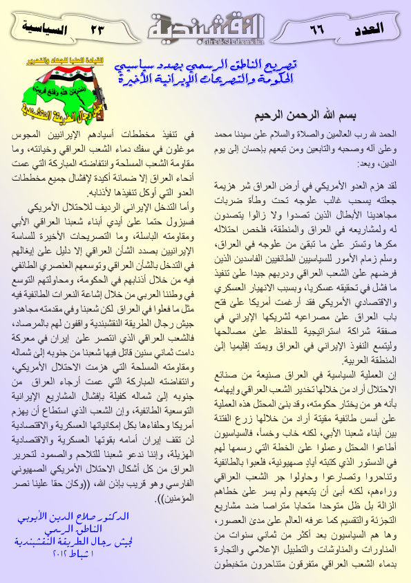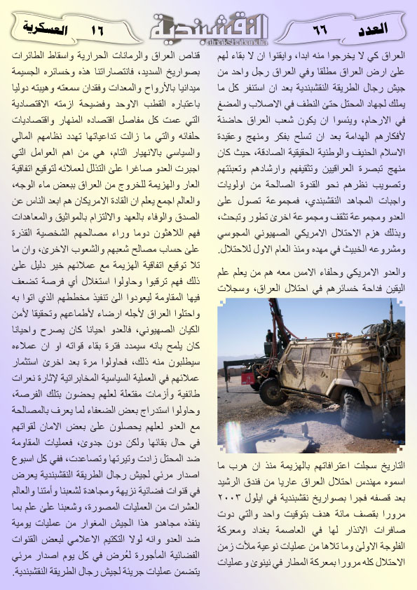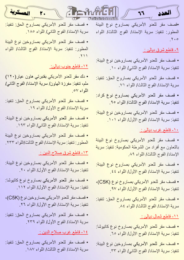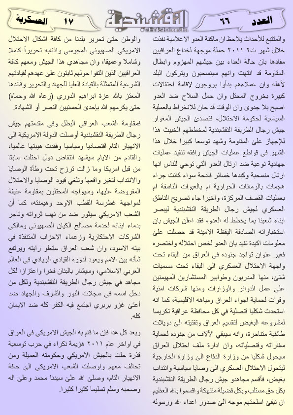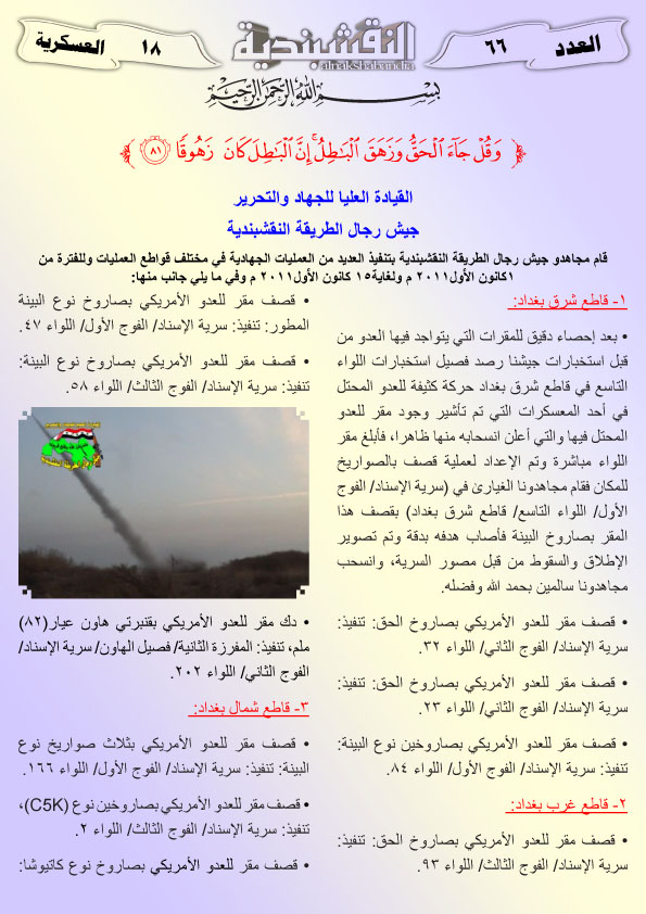 جانب من العمليات الجهادية لجيش رجال الطريقة النقشبندية للفترة من 1 كانون الأول 2011 م ولغاية 15 كانون الأول 2011 م